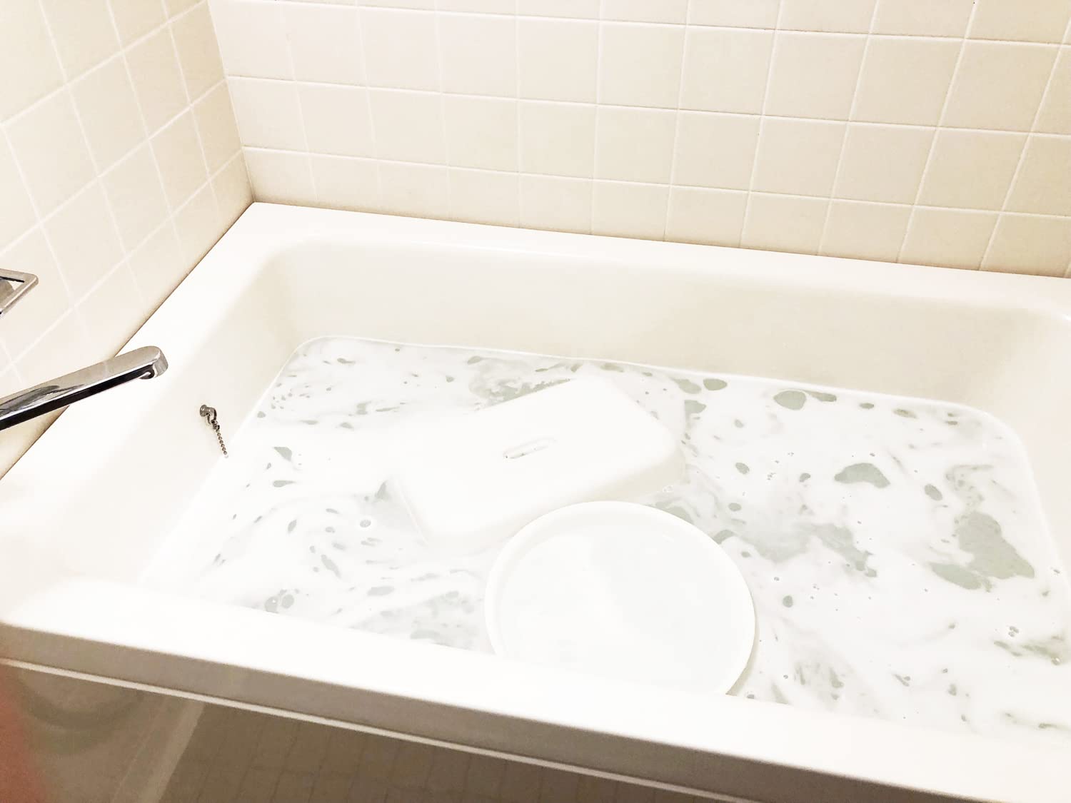 * 残り湯に入れてつけ置きするだけで、風呂釜から浴槽、洗面用具までまる洗い