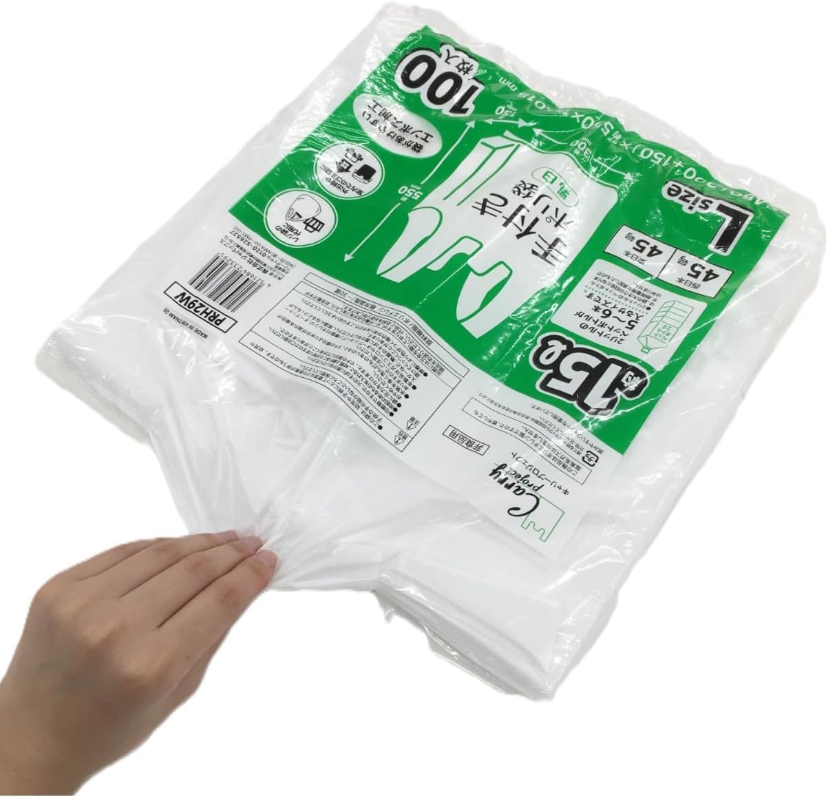 ジャパックス 手付き ポリ袋 乳白 約15L 縦55㎝×横30㎝+マチ15㎝×厚み0.018mm 開きやすい エンボス加工 増量タイプ ゴミ袋 100枚入 2冊セット PRH29W(PRH292)