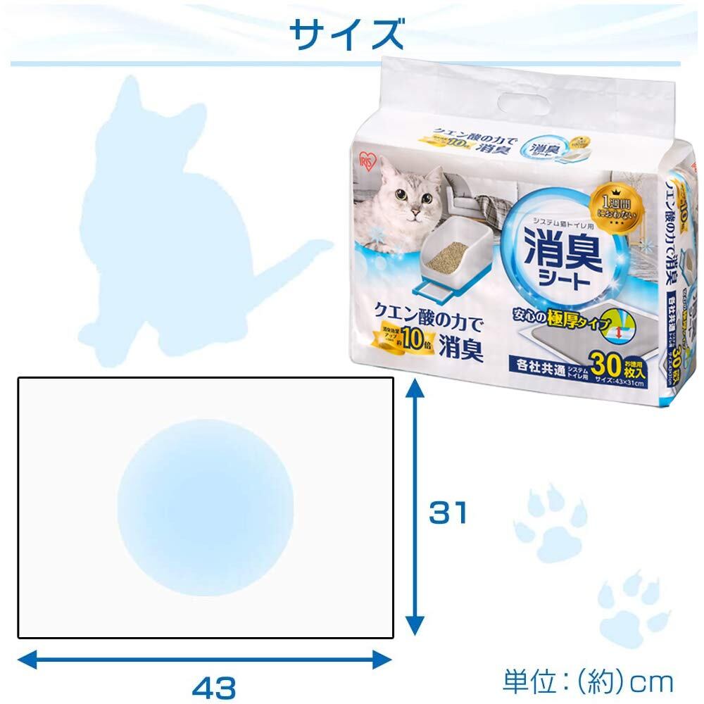 アイリスオーヤマ システムトイレ用 1週間におわない脱臭シート 極厚タイプ 複数猫 クエン酸入 30枚入