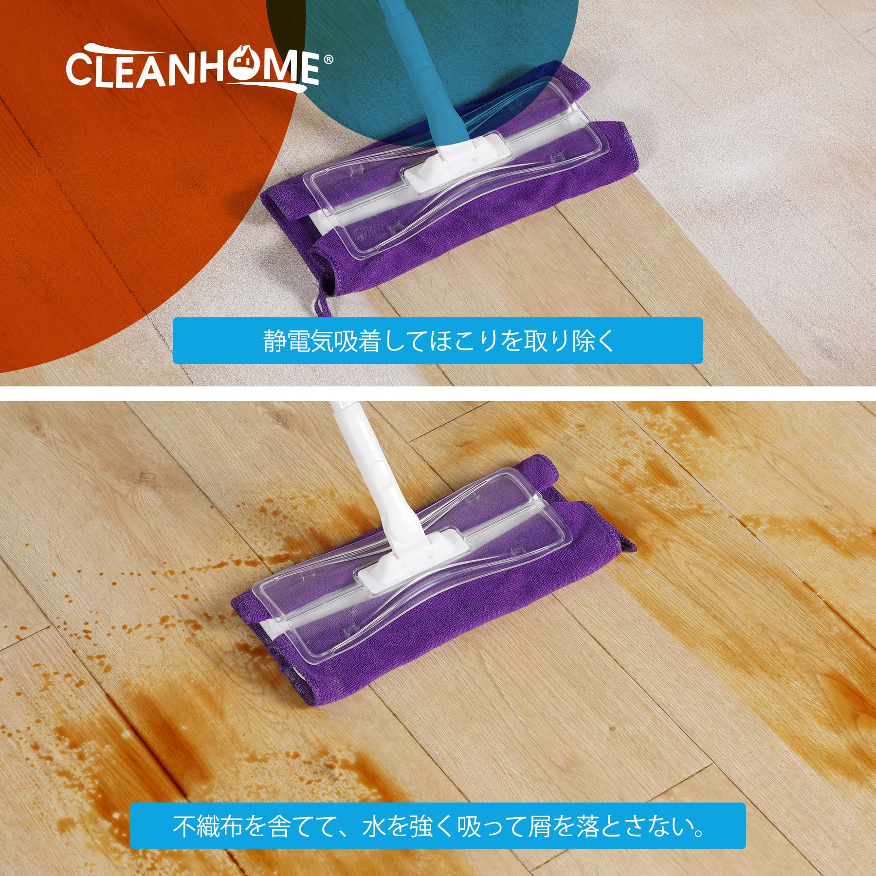 * 【使いやすい雑巾ワイパー】:モップのヘッドは360度回転できるので、使いやすいです。シート部分は髪の毛、ホコリが取り込みやすい、10枚入。