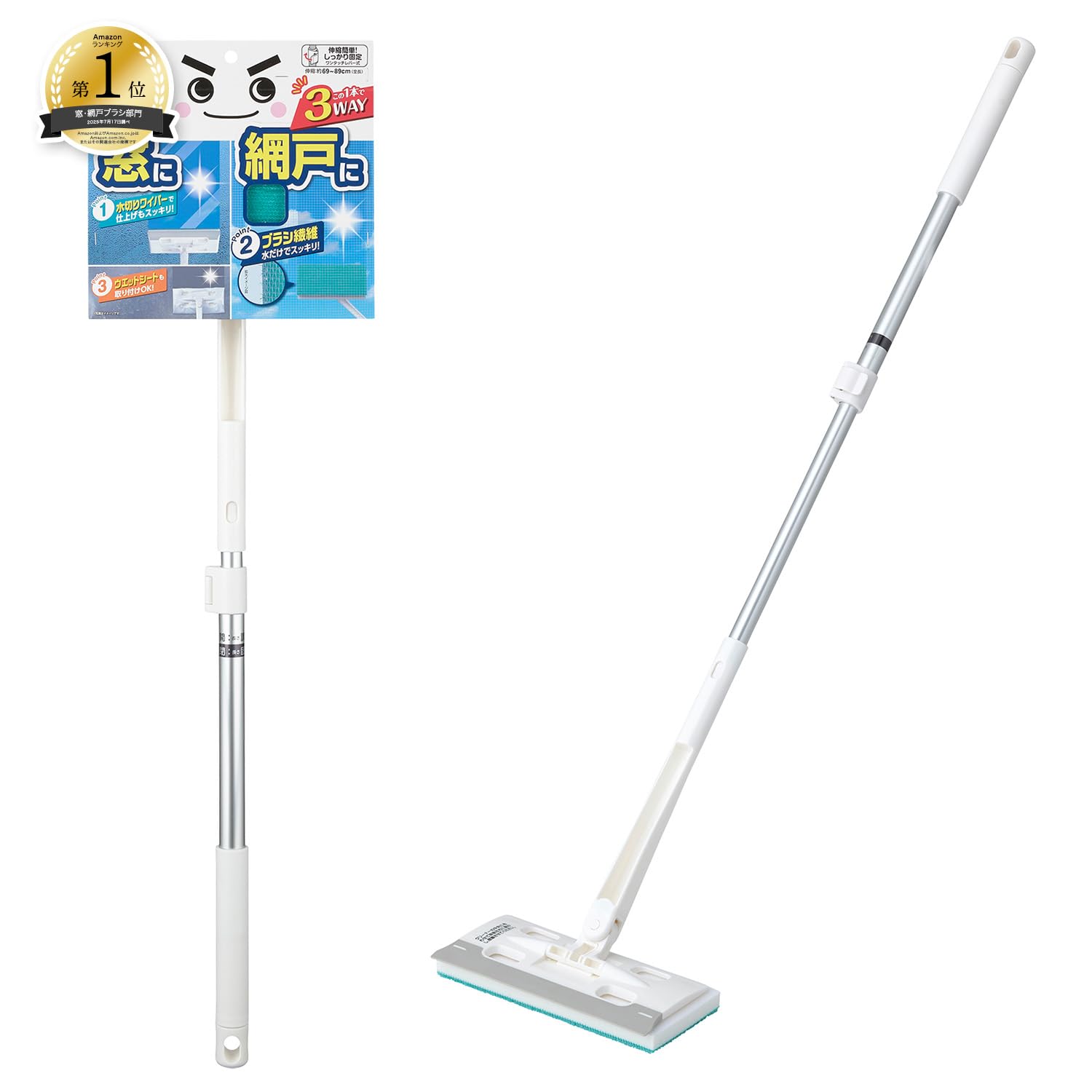 * 窓・網戸の掃除もこれ1本!ウェットシートも取り付けられる3WAYタイプです。