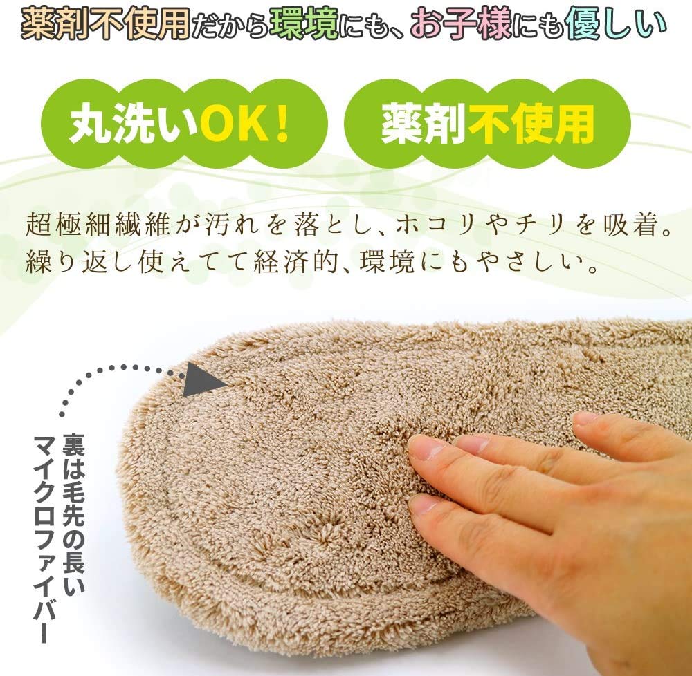 * スリッパ底面の超極細繊維が汚れを落とし、ホコリやチリを吸着します。床面のおそうじにとっても便利。