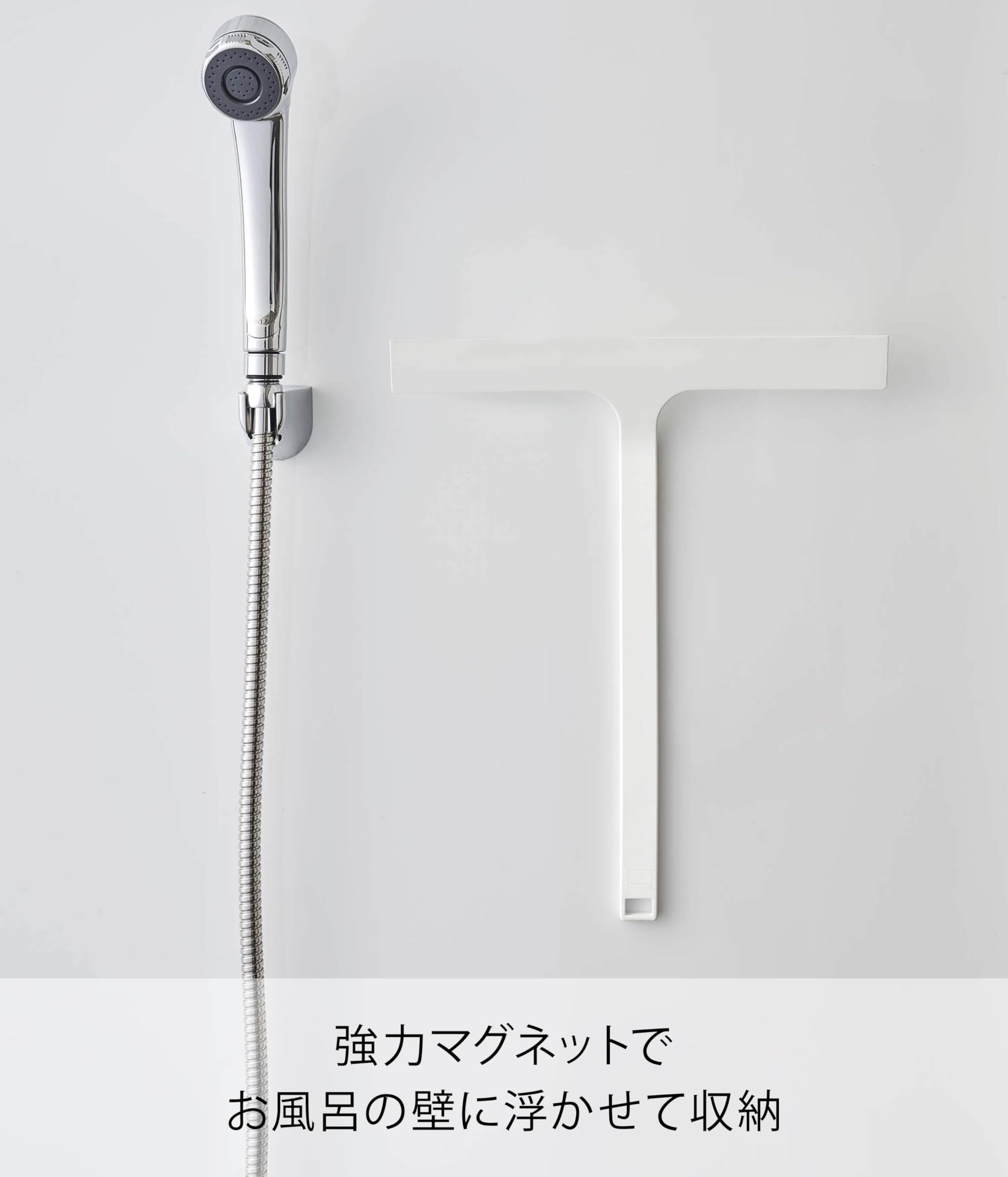 * お風呂の壁に強力マグネットで簡単取り付け! 浴室の壁や鏡をカビや水垢から防いでくれるシリコーン製水切りワイパー。 ワイパー部分がワイドだから30cmまでの鏡の水切りも1度でスッキリ! 柄が長いから浴槽の底や天井、壁の高い位置にも使えます。 フックにもかけられます。