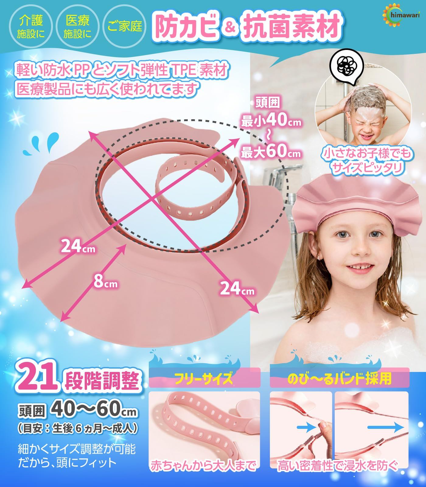 【眼科医推薦】 C_himawari シャンプーハット バスグッズ お風呂 赤ちゃん 大人 子ども 介護 キッズ (ブルー・5個)