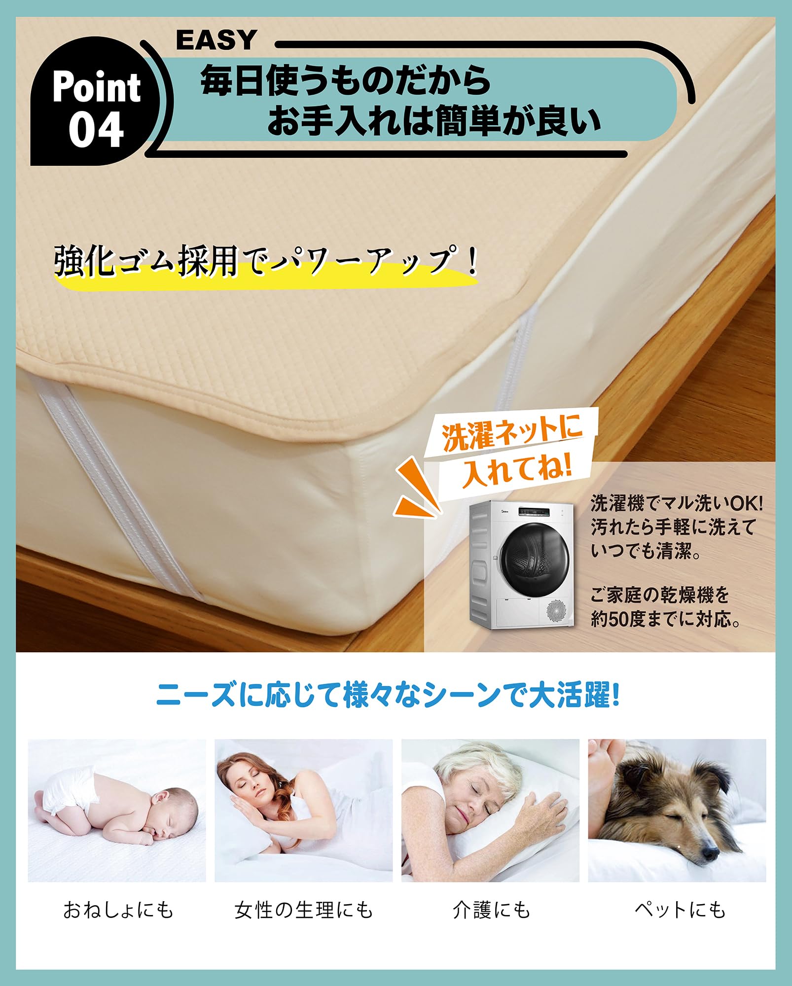 いつでも清潔かつ衛生的な環境を保つための、頼りになる防水シーツです。