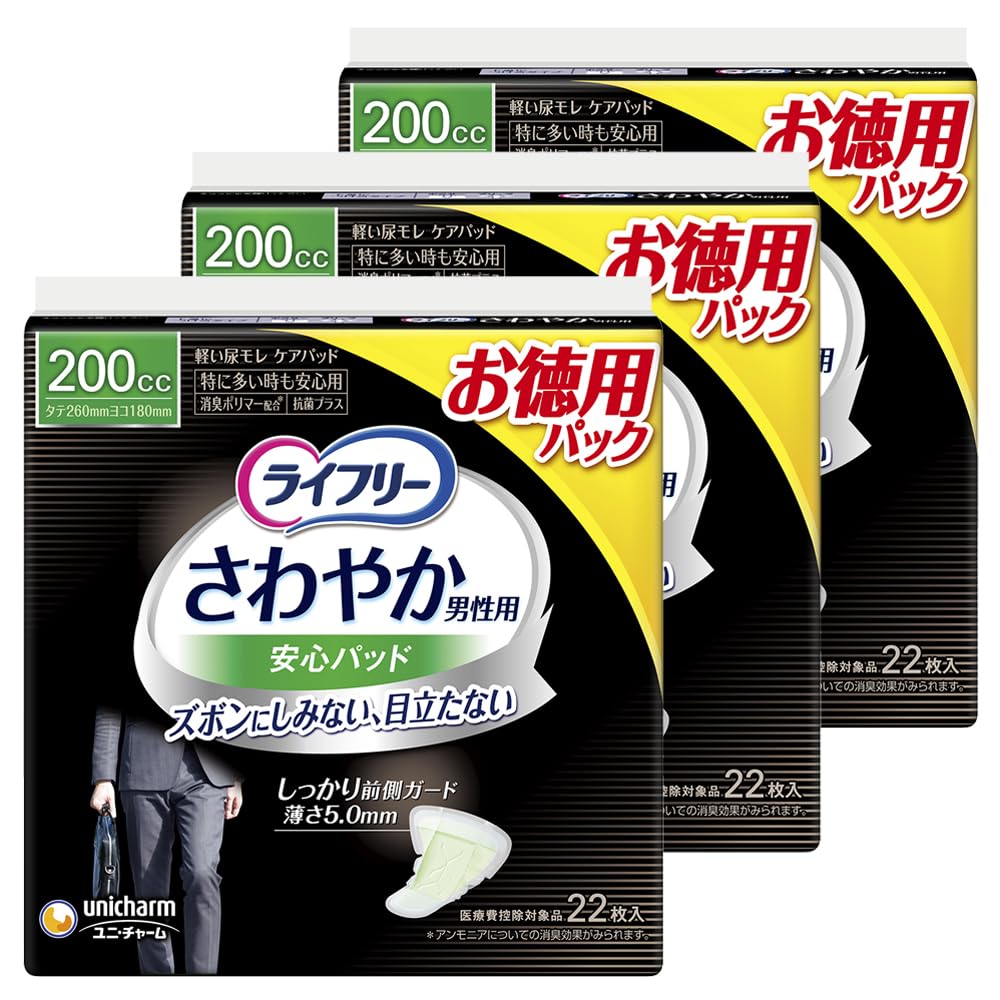 ライフリー 【まとめ買い】【尿もれパッド男性用 200㏄】 さわやか 男性用 安心パッド 特に多い時も安心用 66枚(22枚×3パック) 26㎝ (足につたうほどモレてしまう多量)