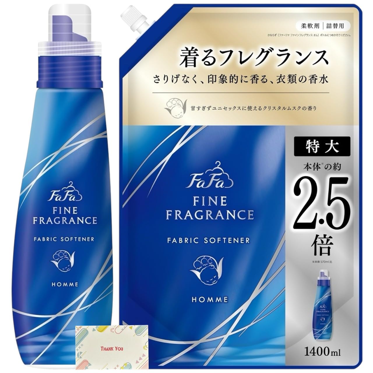 Kunutonn ファーファ ファインフレグランス 柔軟剤 本体 600ml + 詰め替え 大容量 1440ml 各種1個セット + オリジナルロゴ入りeおまけ付 オム クリスタルムスクの香り