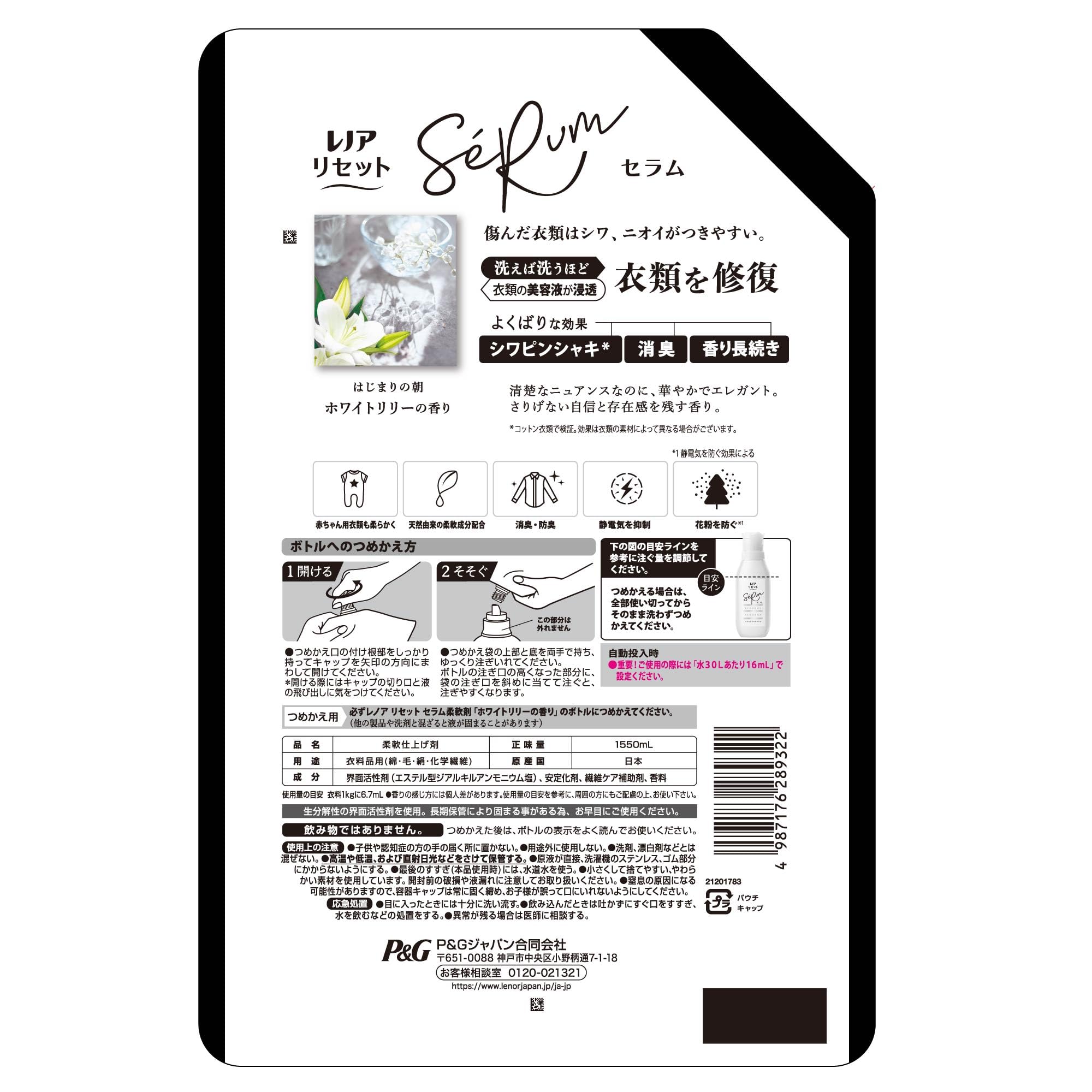レノア Lenor リセット セラム 柔軟剤 ホワイトリリーの香り 詰め替え 1,550mL×6袋 [大容量] [ケース品]