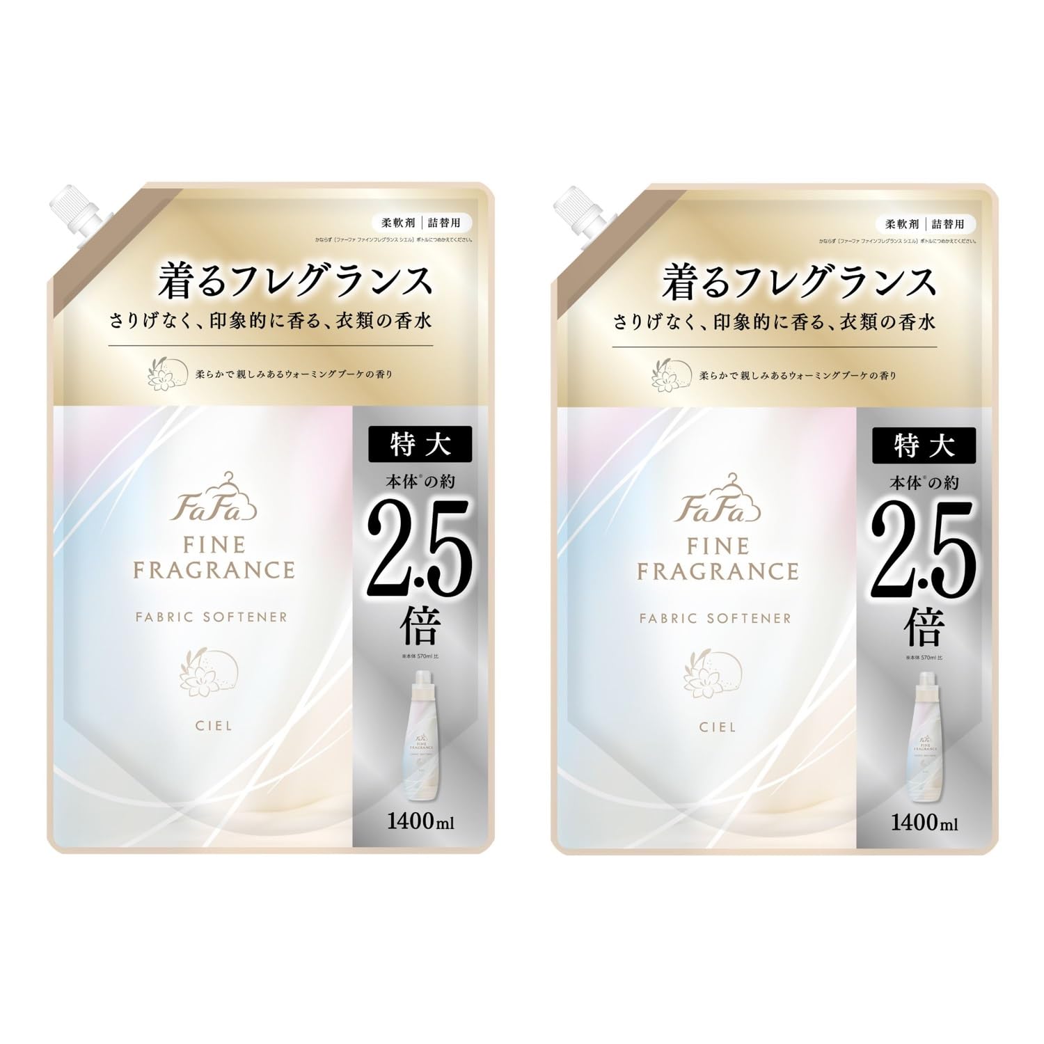【まとめ買い】 ファーファ ファインフレグランス 柔軟剤 シエル 1400ml 大容量 詰替 ウォーミングブーケの香り ×2個
