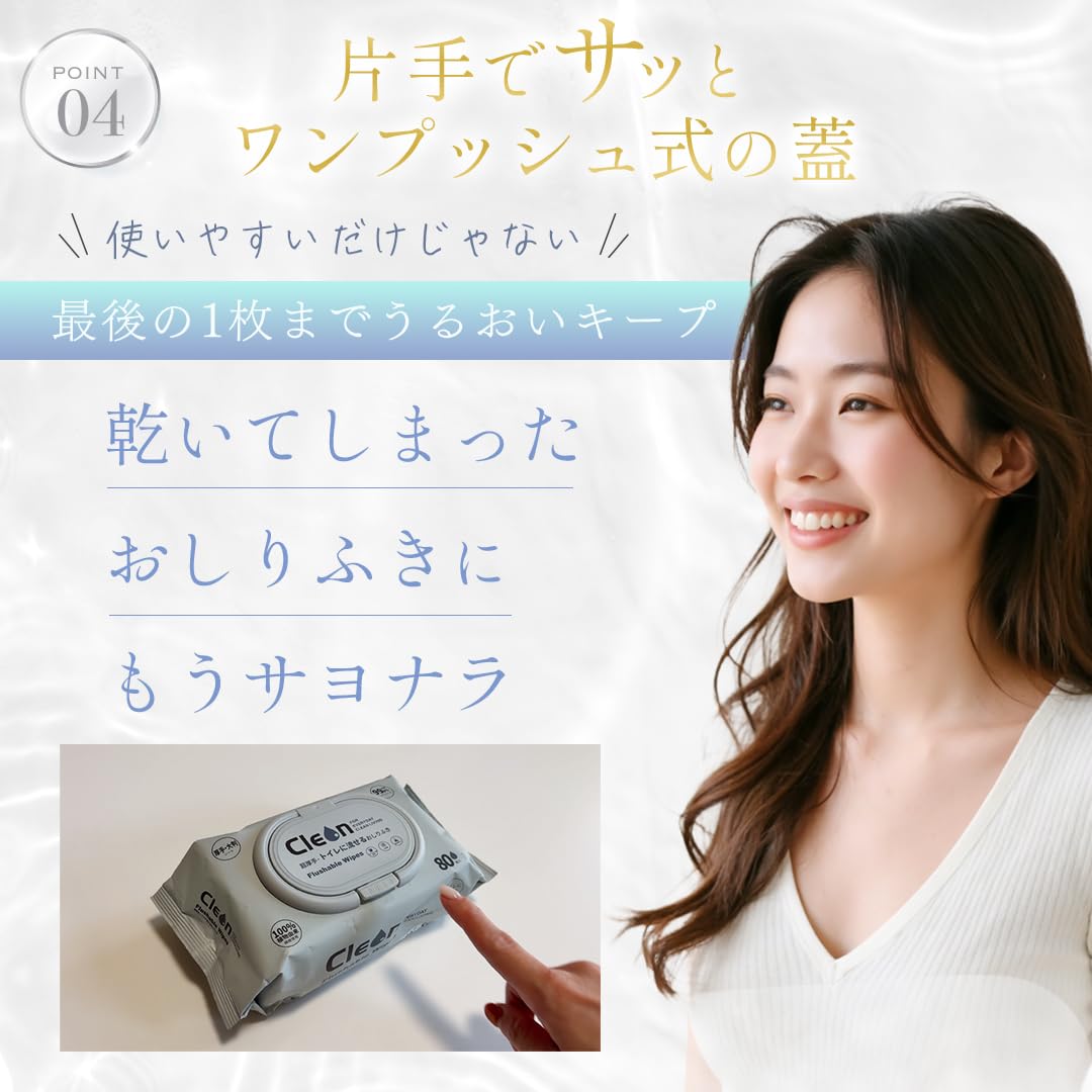Cleon 超厚手 トイレ流せる おしりふき からだふき ウェットティッシュ 80枚×9パック 大判 ワンプッシュ 蓋付き 99.9%除菌 ノンアルコール 肌に優しい 介護 対応 除菌シート