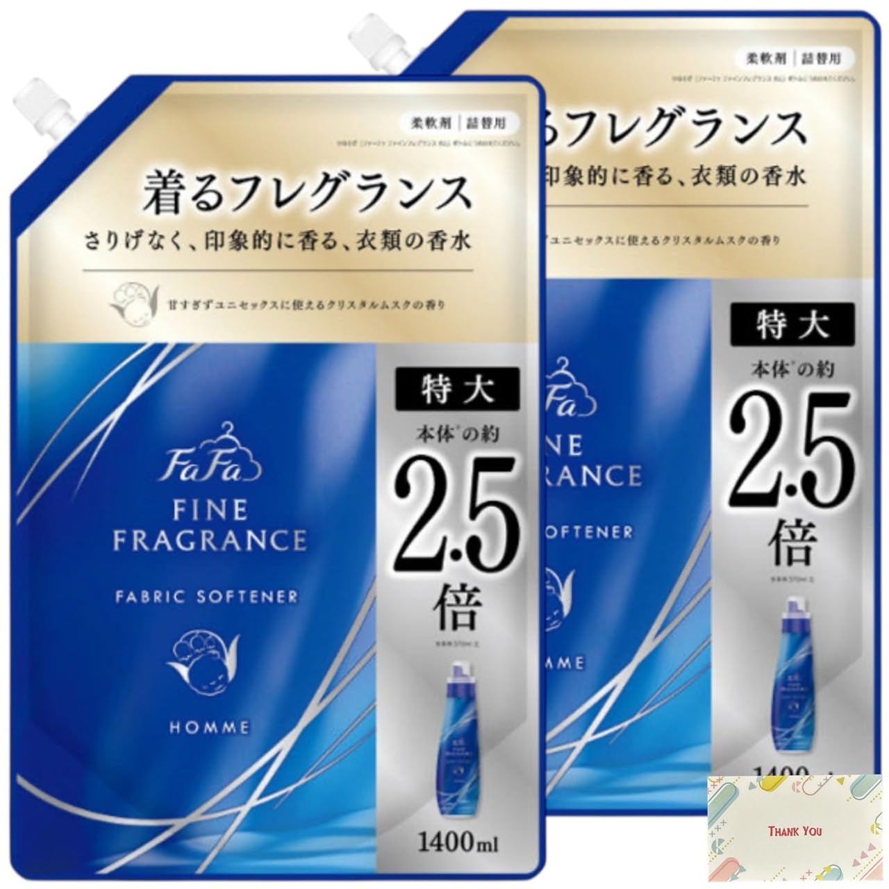 Kunutonn ファーファ ファインフレグランス オム 柔軟剤 詰め替え 大容量 1400ml + オリジナルロゴ入りeおまけ付 クリスタルムスクの香り 2袋セット