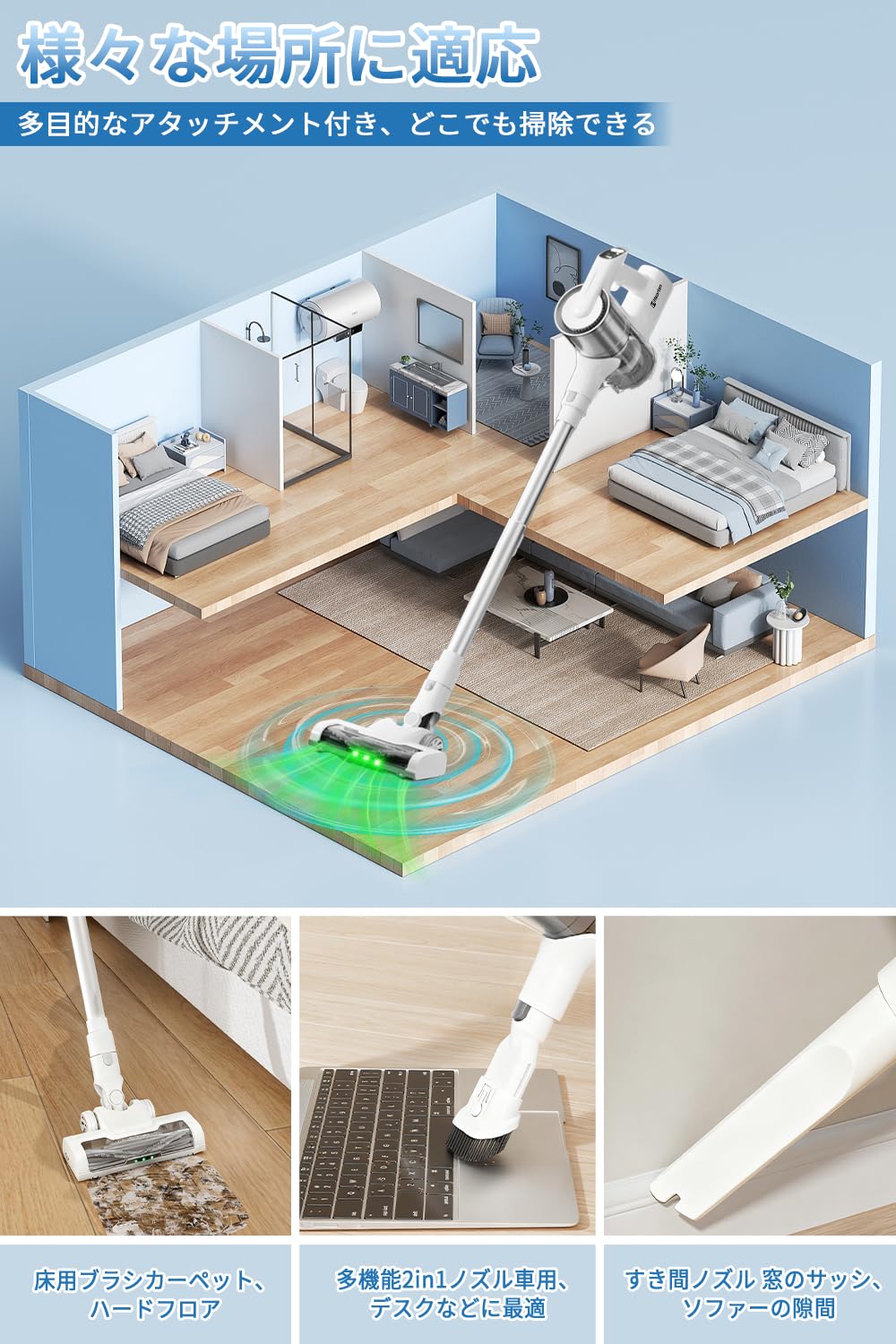 家族全員が簡単に使用できるこの掃除機は、これまでにない自由度と便利さを提供し、家中をきれいに保つための理想的なパートナーとなるでしょう。
