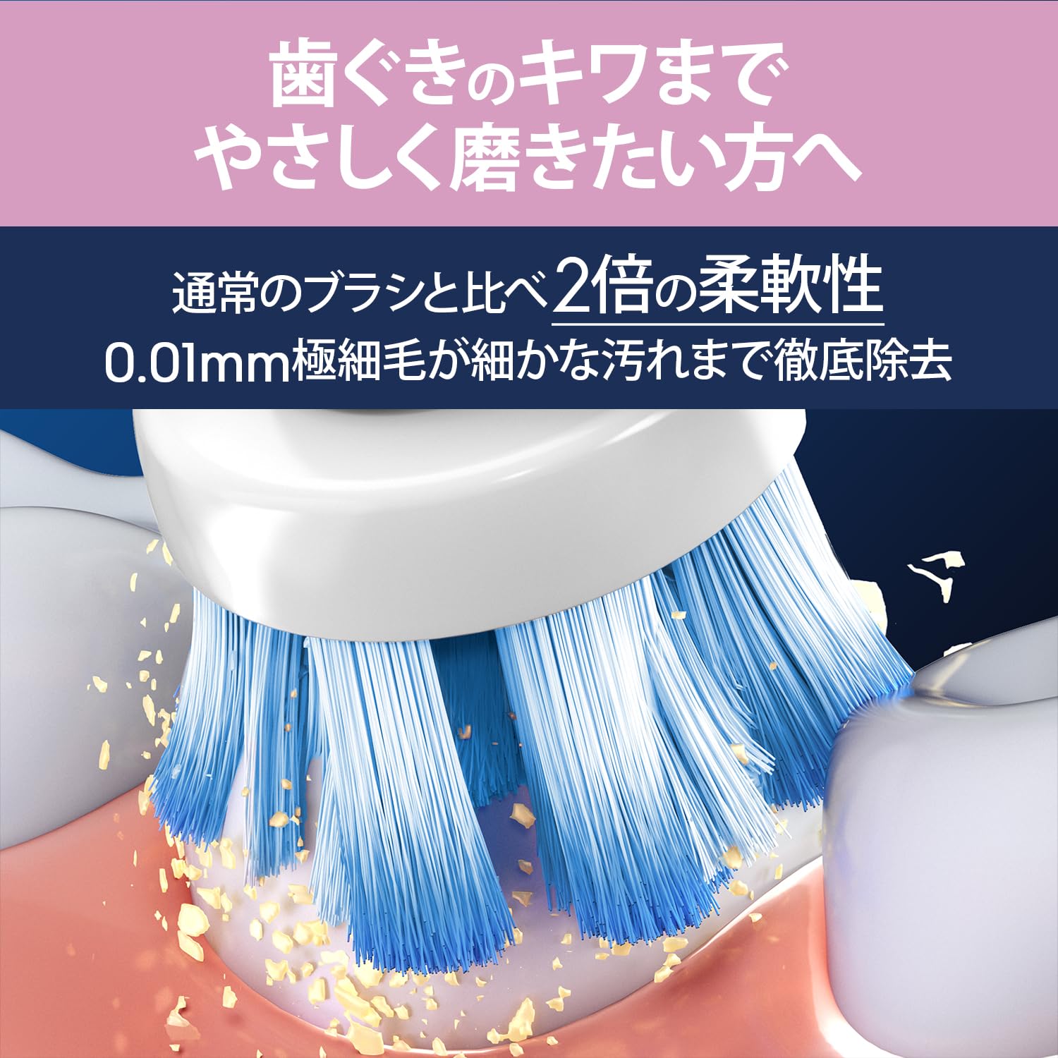 ■ 【歯ぐきのきわまでやさしく磨きたい方に】0.01mmの極細毛が歯ぐきのキワまで自然にフィットし、歯ぐきをいたわりながら、歯垢をしっかり除去。