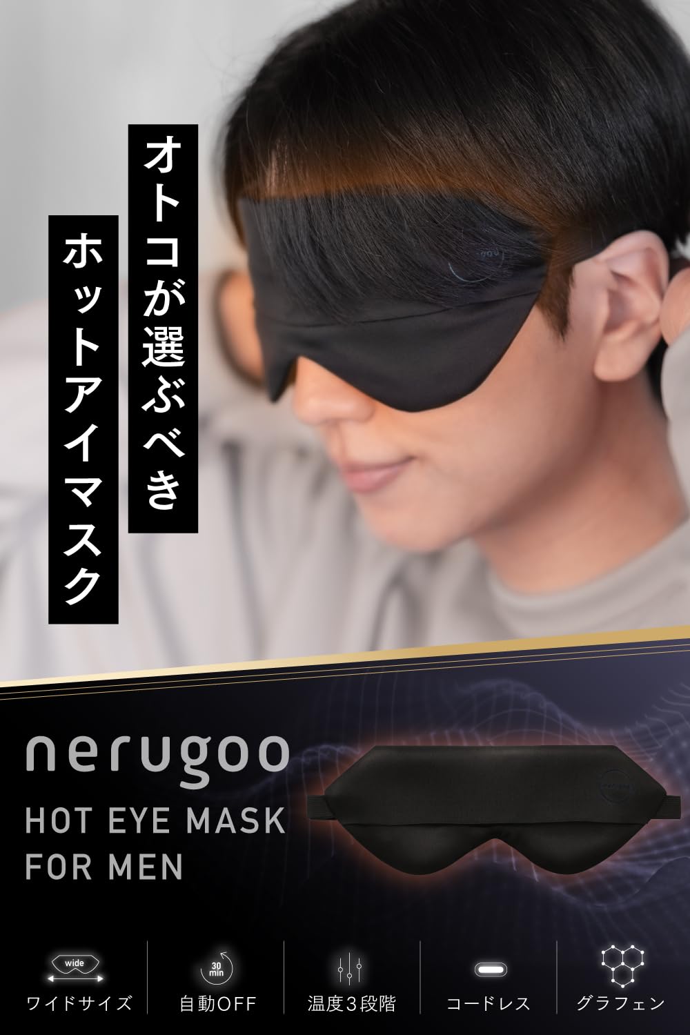 nerugoo[ネルグー] ホットアイマスク 充電式 何度でも繰り返し使えるアイマスク【男性用おおきめサイズx「MONOQLO」2024年年間総合ベストバイ受賞】 プレゼント (ブラック)