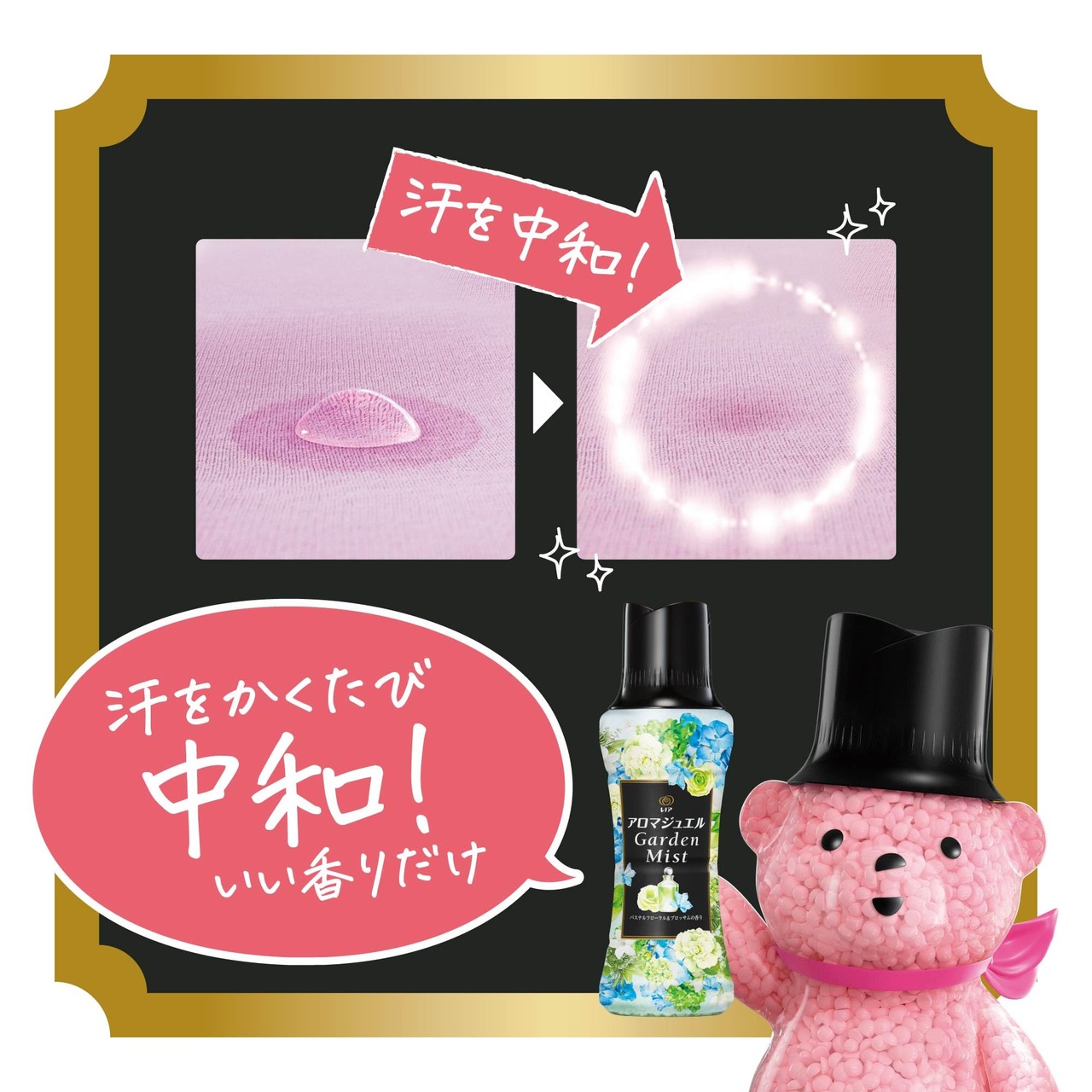 ■ アロマジュエルなら柔軟剤に比べて超吸水*。