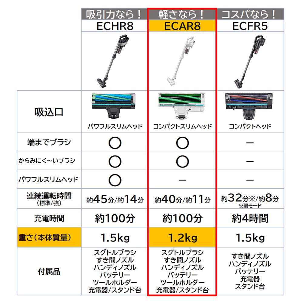 ■ 最長連続運転時間:標準モード:約40分/自動モード:約28分/強モード:約11分