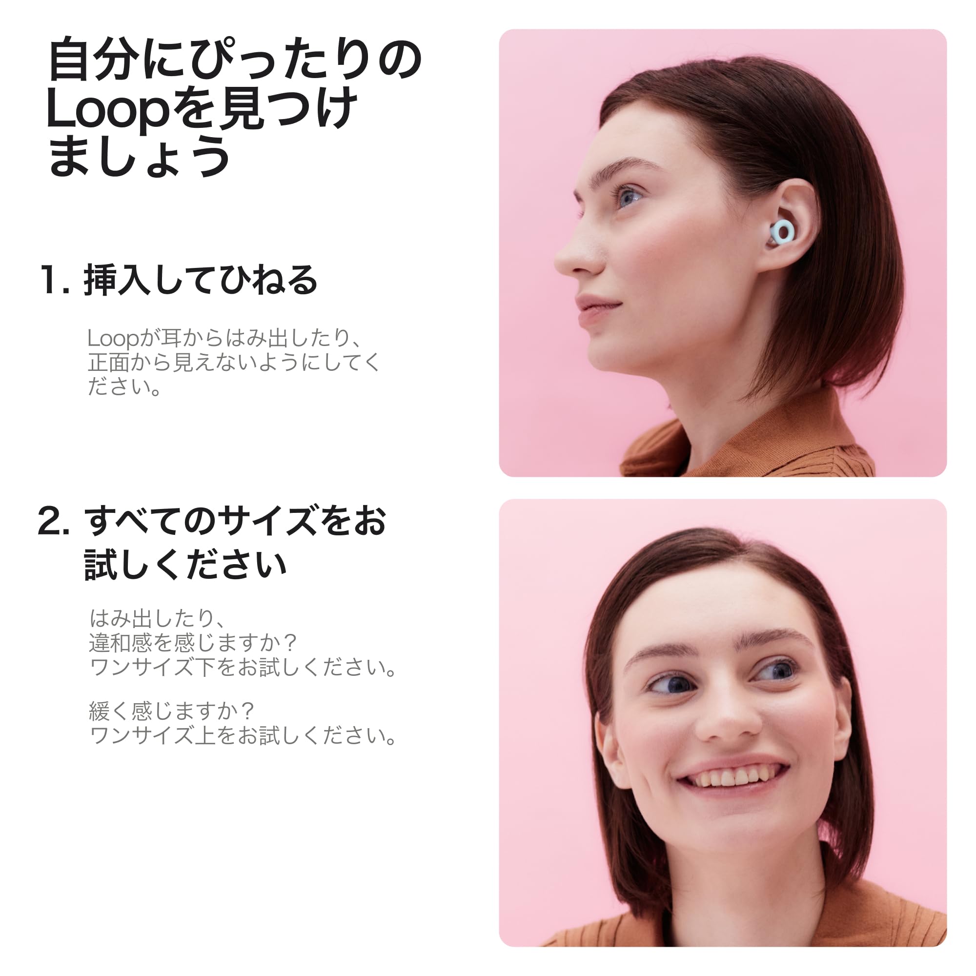 正しく装着すると、Quiet 2は耳からはみ出しません。