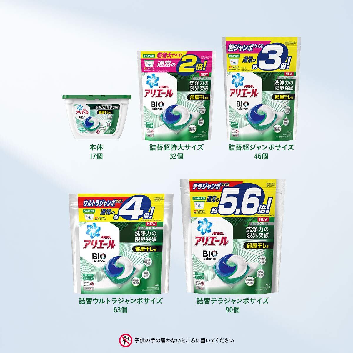 アリエール バイオサイエンス 部屋干し 洗濯洗剤 ジェルボール 抗菌&菌のエサまで除去 詰め替え 90個(約5.6倍) 1 袋