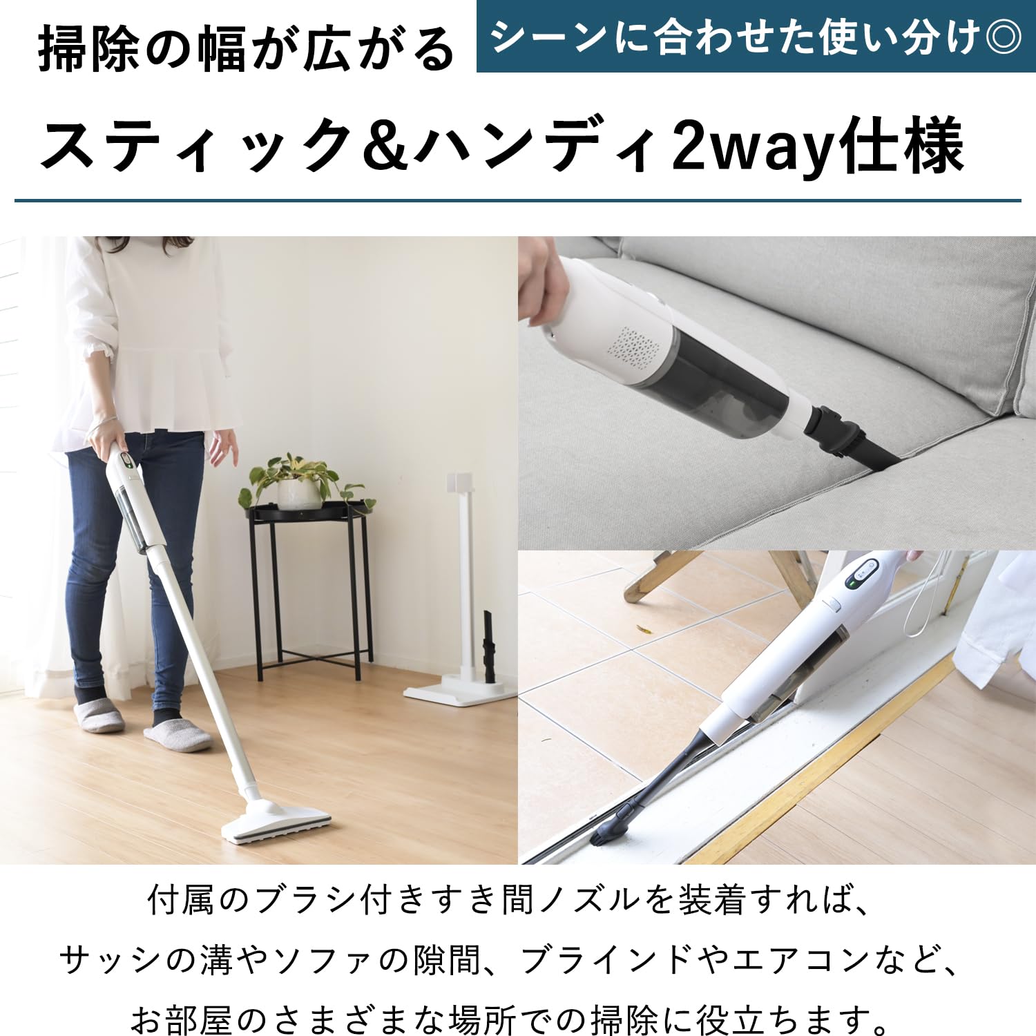 ■ 【商品仕様】▪本体サイズ:スティック時=幅21.2×奥行16.2×高さ101cm/ハンディ時=幅7×奥行7.7×高さ46cm ▪本体重量:スティック時=820g/ハンディ時=600g ▪充電アダプター:入力=AC100-240V(50/60Hz)/出力=DC13.5V 650mA ▪充電時間:約3時間 ▪リチウムイオン電池:11.1V 2000mAh ▪連続使用時間:強=約10分/標準=約25分 ▪集じん容量:0.2L ▪充電コード長:約1.5m ▪付属品:ブラシ付きすき間ノズル、フロアノズル、延長管、充電アダプター、取扱説明書(保証書付き) ▪お買い上げ日より1年間(保証の範囲については、取扱説明書をご確認ください。