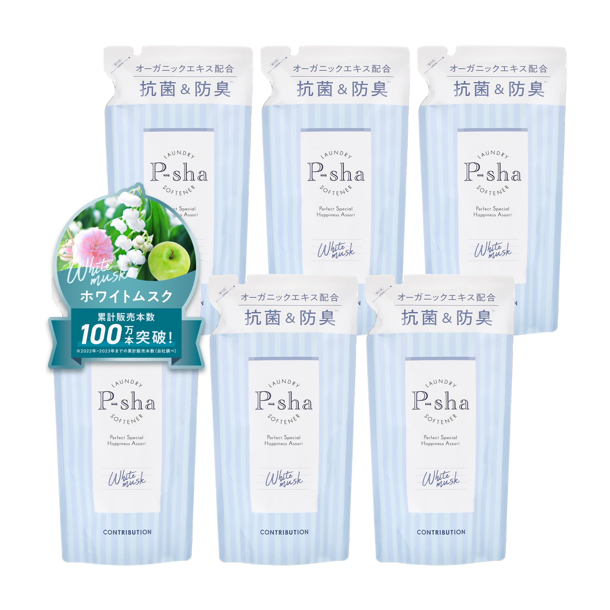 [Nissy(西島隆弘) プロデュース] 柔軟剤 P-sha パーシャ 詰め替え 6個セット (ホワイトムスク) 24時間抗菌 防臭 静電気防止 柔らか仕上げ ニッシー 洗濯用洗剤 洗濯用品 オーガニックエキス配合 毛玉防止