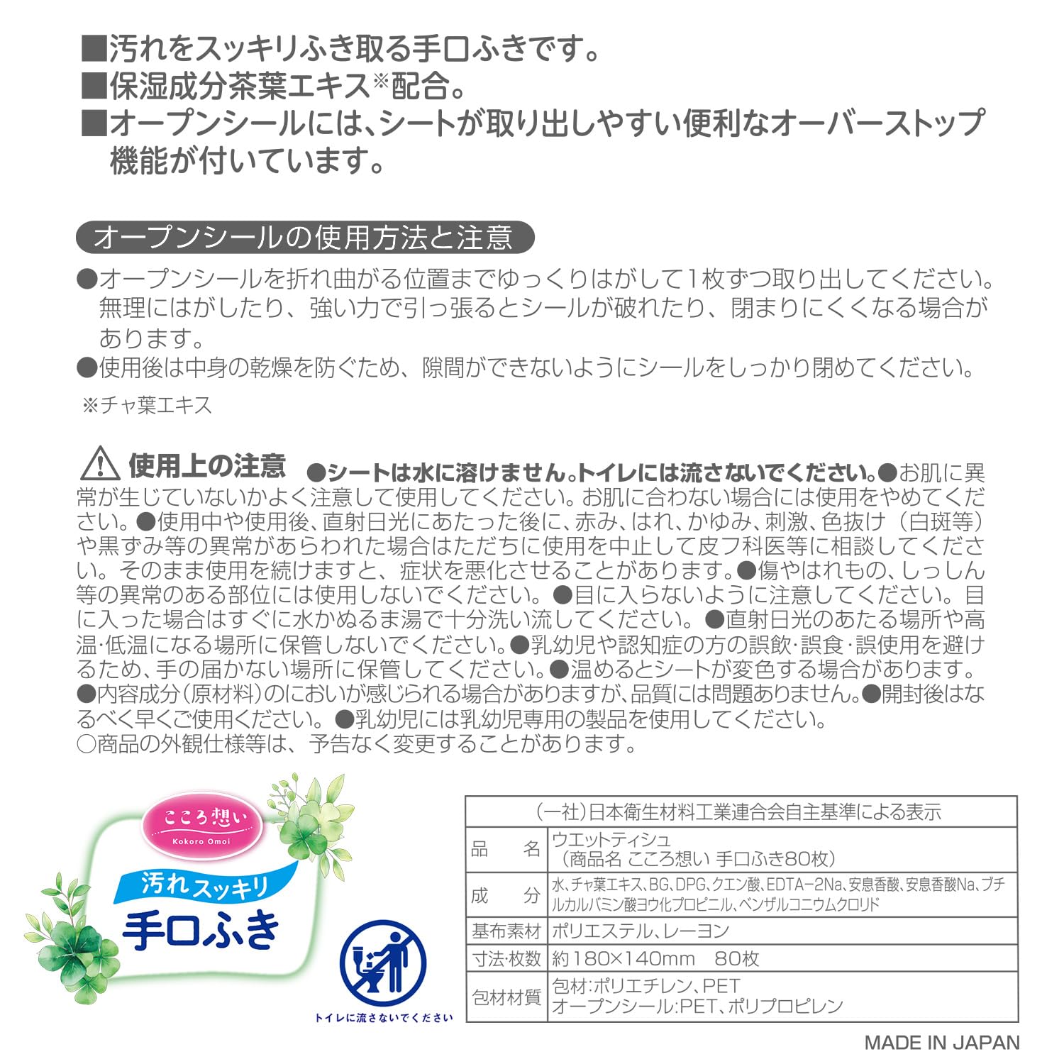 レック(LEC) こころ想い 大人用 手口ふき 80枚×48個 (3840枚) ケース品/丈夫なシートでしっかり拭ける/日本製/無香料/茶葉エキス配合