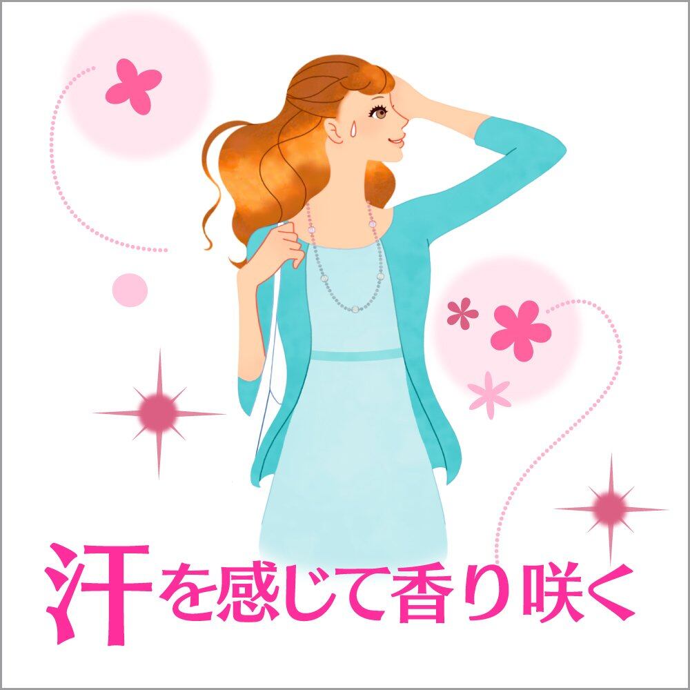 ■ 香りセンサーの働きで、水分・汗を感じて、朝から夜まで、華やかな香りが生まれ続けます。
