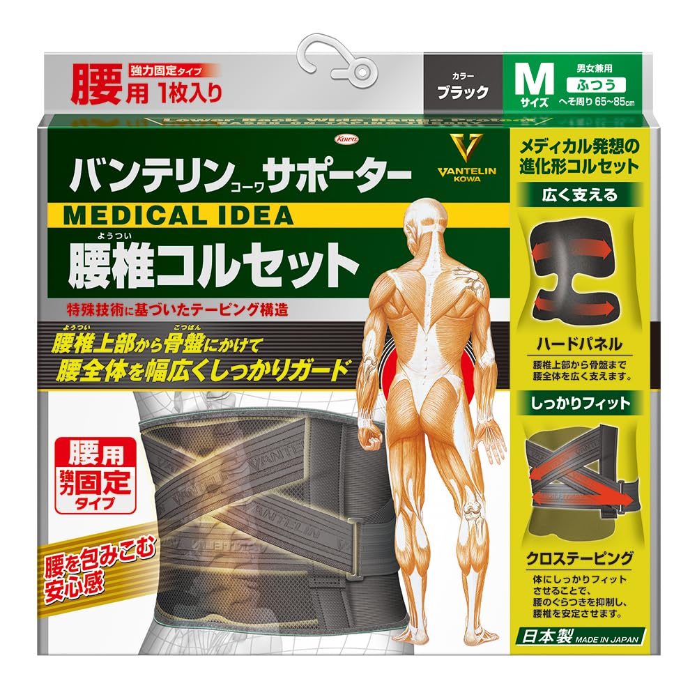 バンテリンサポーター 腰椎コルセット 腰のぐらつき抑制 ふつう/Mサイズ(へそ周り 65-85cm) ブラック