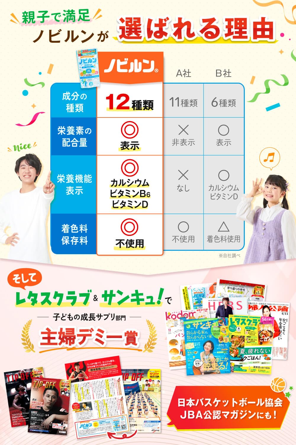 ■ 主婦から絶大な支持を得ている生活情報誌『 レタスクラブ 』や『 サンキュ 』で、ママたちが選ぶ「主婦デミー賞」に輝きましたまた、日本バスケットボール協会JBA公認マガジン『TIPOFF』にも掲載されています