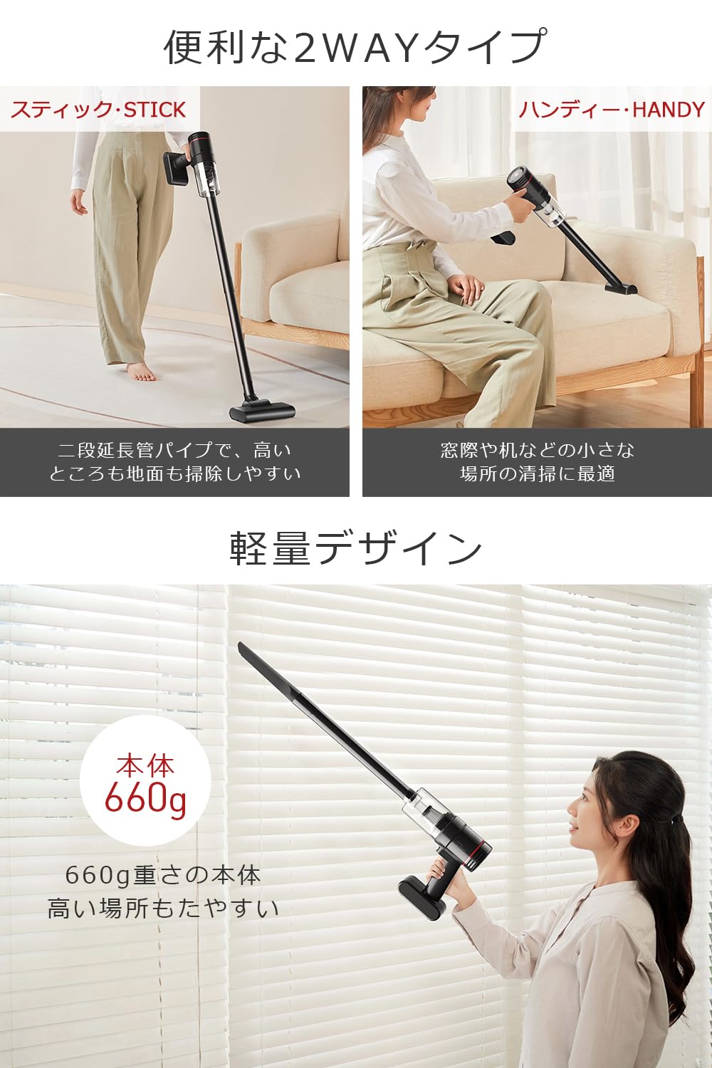 ■ 【軽量0.6kg!片手で楽々扱えるスティッククリーナー】重さはわずか0.6kgと超軽量。