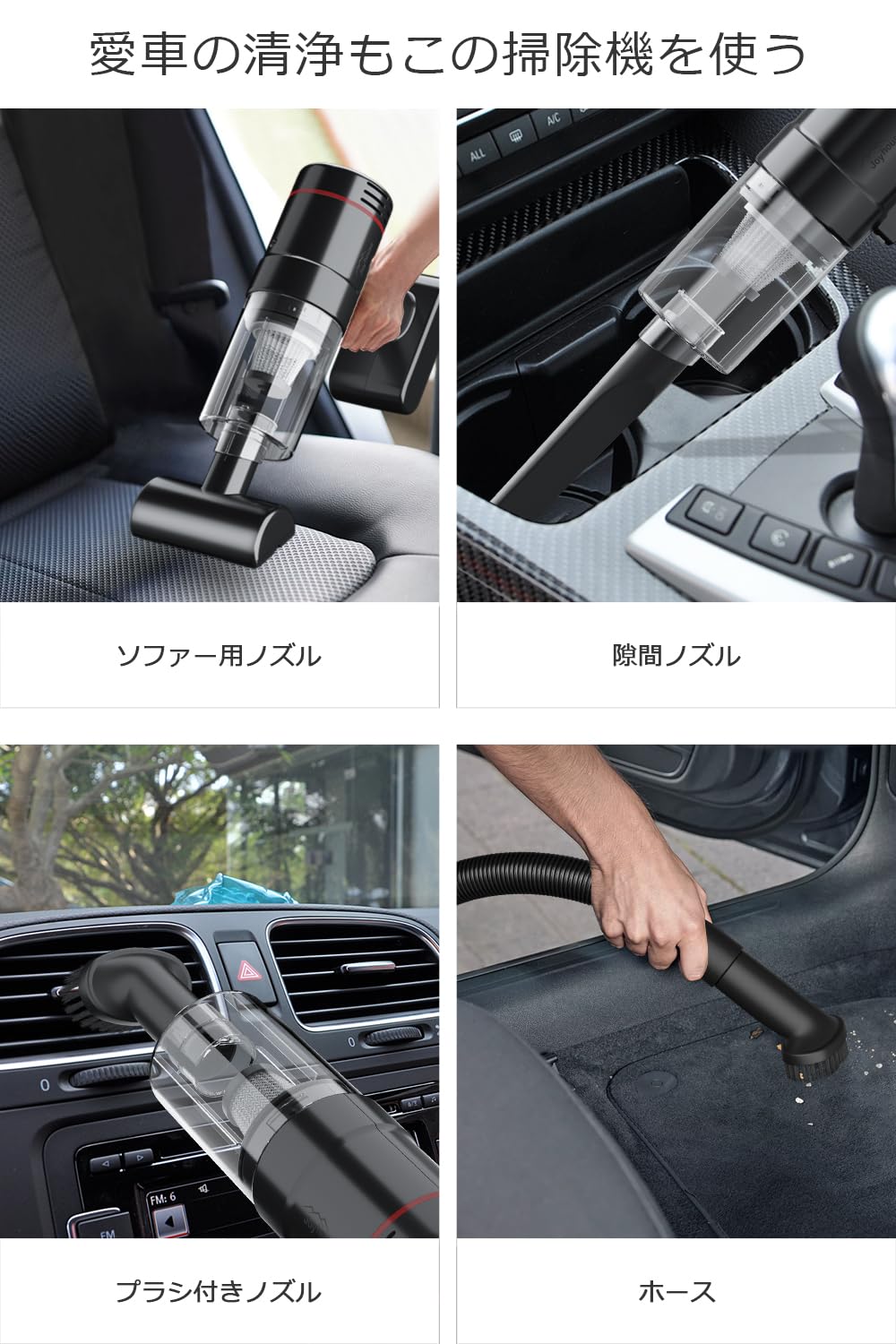 フル充電すれば家中の掃除から車用掃除機としての使用まで一度でカバーでき、日常の掃除に十分なパワーを発揮します。