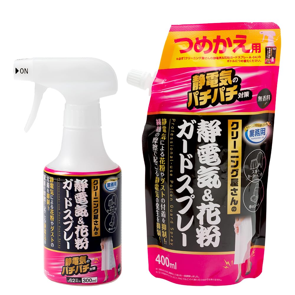 アイメディア(Aimedia) 静電気&花粉ガードスプレー 本体+詰め替えセット 300ml+400ml 日本製 静電気防止スプレー 花粉対策 静電気除去 静電気対策 帯電防止剤 無香料 業務用クリーニング屋さん