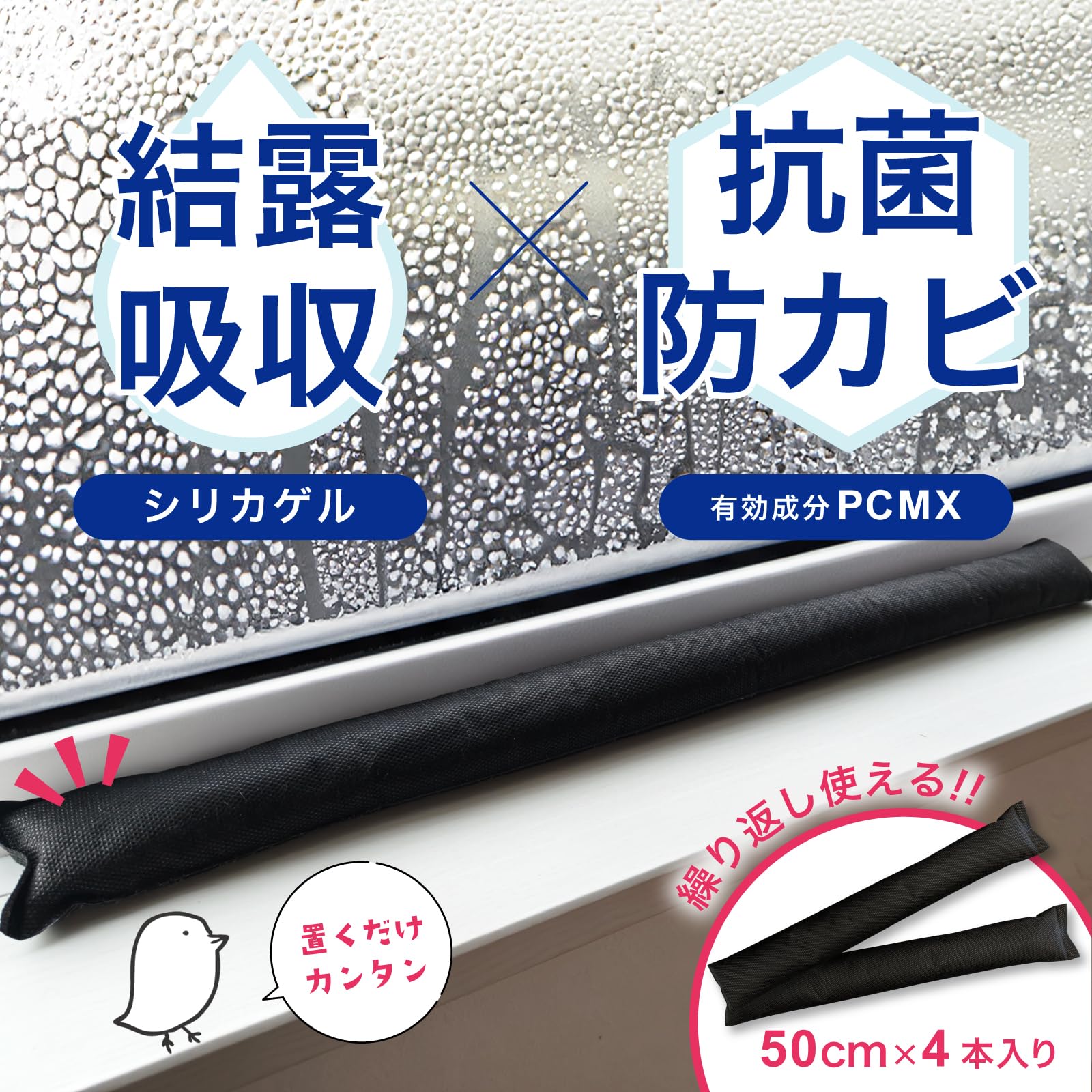 きになるニオイトリ 結露とカビ対策用 50cm×4本入り|置くだけ簡単 除湿・抗菌・防カビ・消臭 結露をしっかり吸水・ニオイ対策 安心の日本製 約6カ月有効 (50cm×4本)