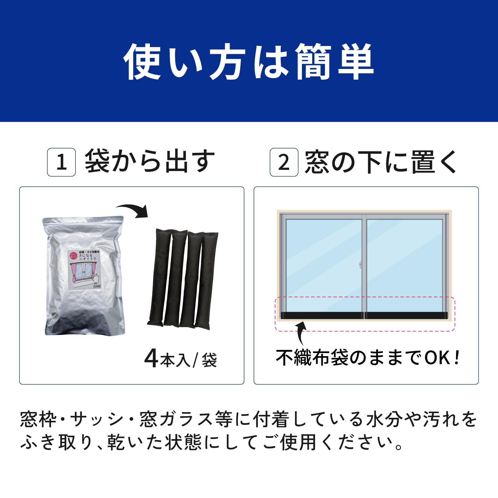 * 【使い方】結露や湿気が気になる窓下に置くだけカンタン!天日干しをすることで、吸水性が回復します。