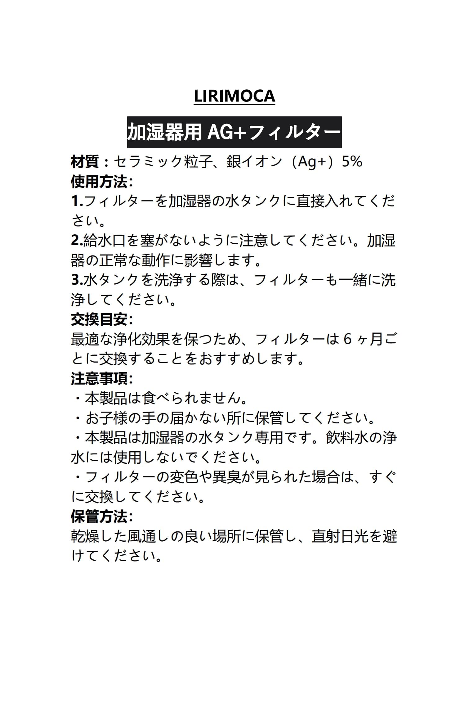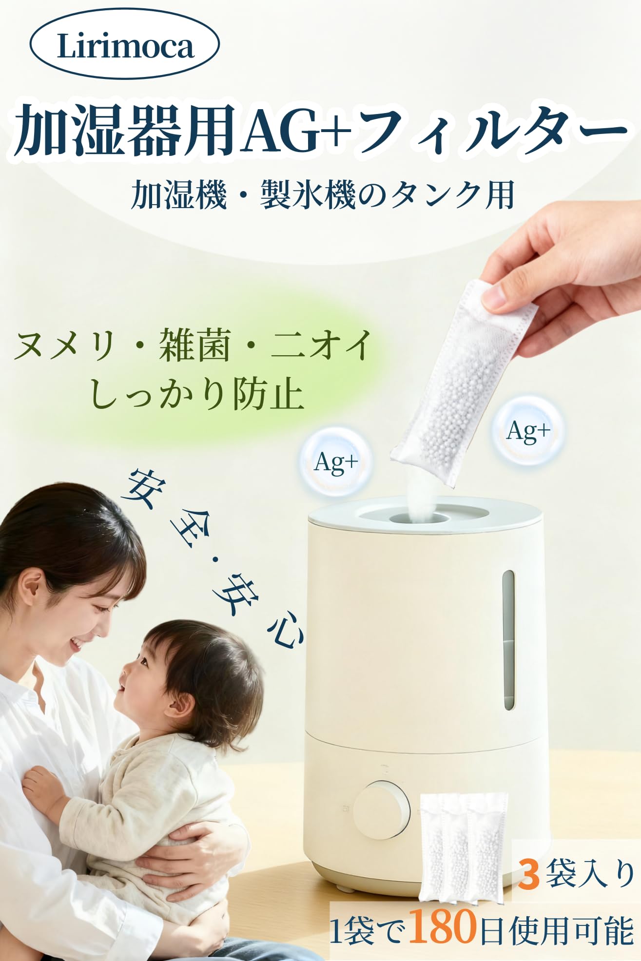 Lirimoca 加湿器 除菌剤 AG+フィルター 3枚入り タンクに入れるだけ 180日持続 ぬめり カビ 雑菌対策 銀イオン 赤ちゃん ペットに安全 無添加 消臭