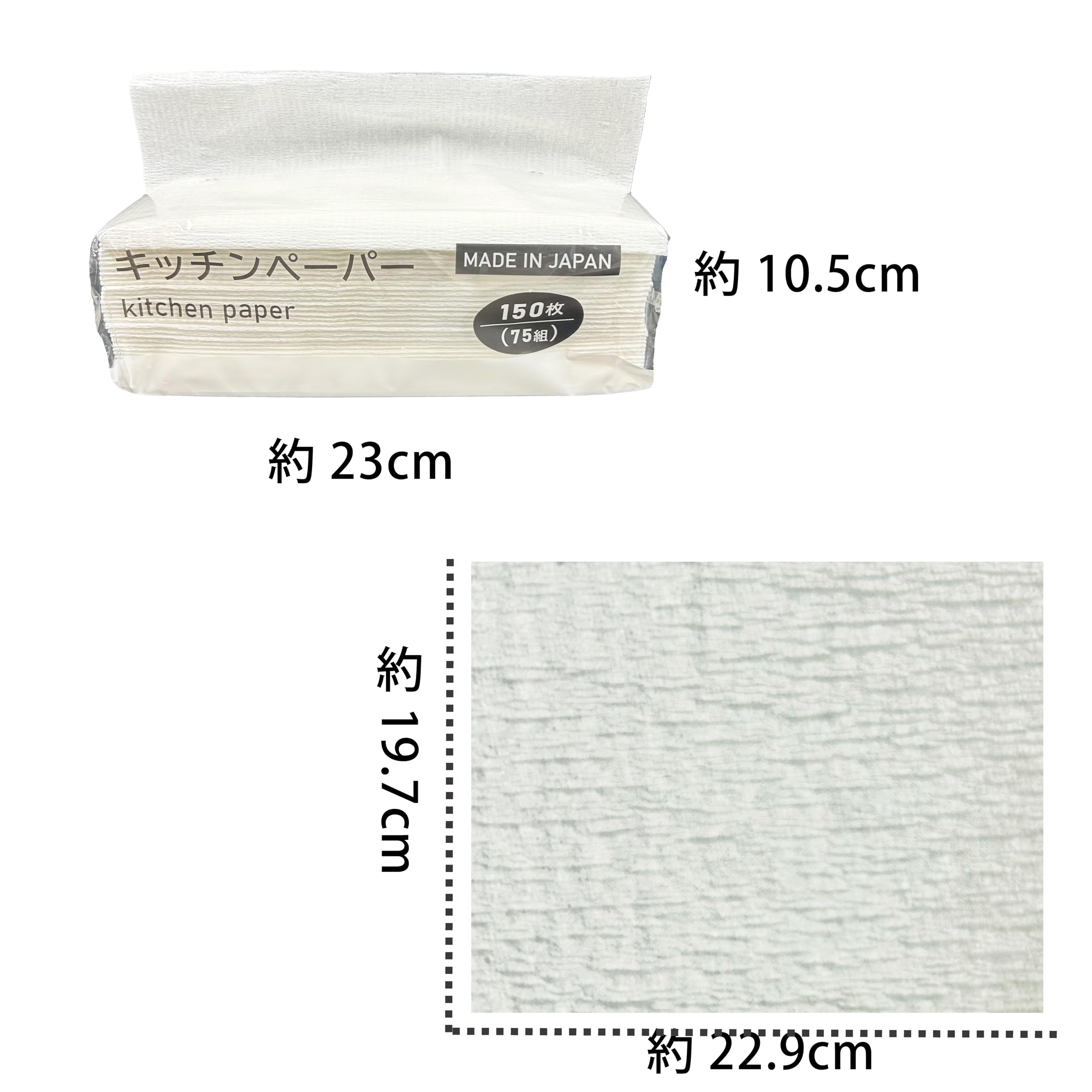 * 寸法 197㎜×229㎜(1枚あたりのサイズ)、105×230×85㎜(パッケージサイズ) 内容量 75組150枚 2枚重ね ×6個セット