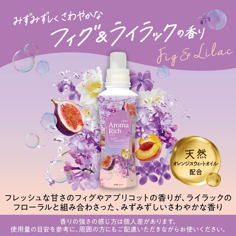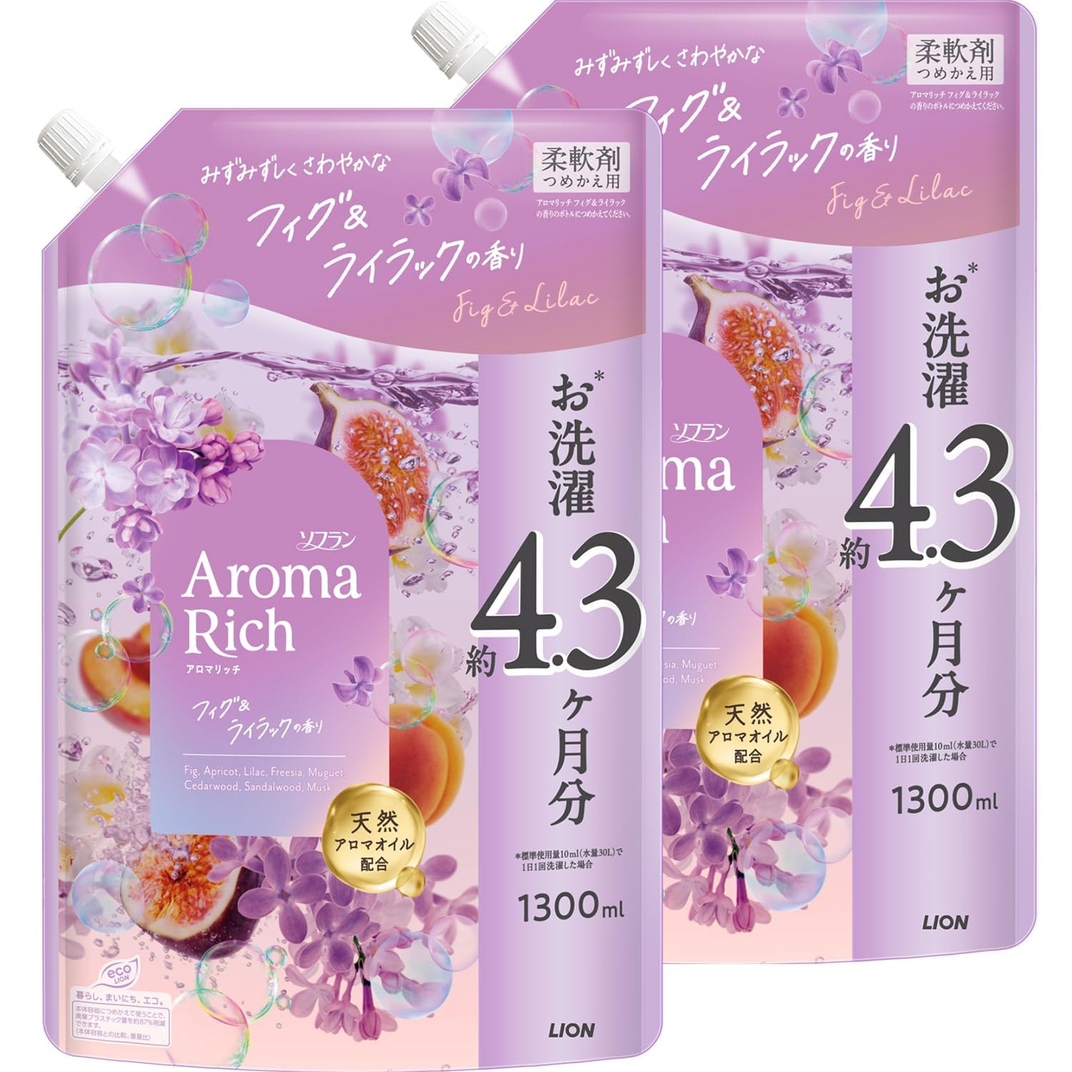 ソフラン アロマリッチ みずみずしくさわやかなフィグ&ライラックの香りの香り 詰替大容量1300ml×2個 柔軟剤 天然アロマオイル配合 防臭 抗菌