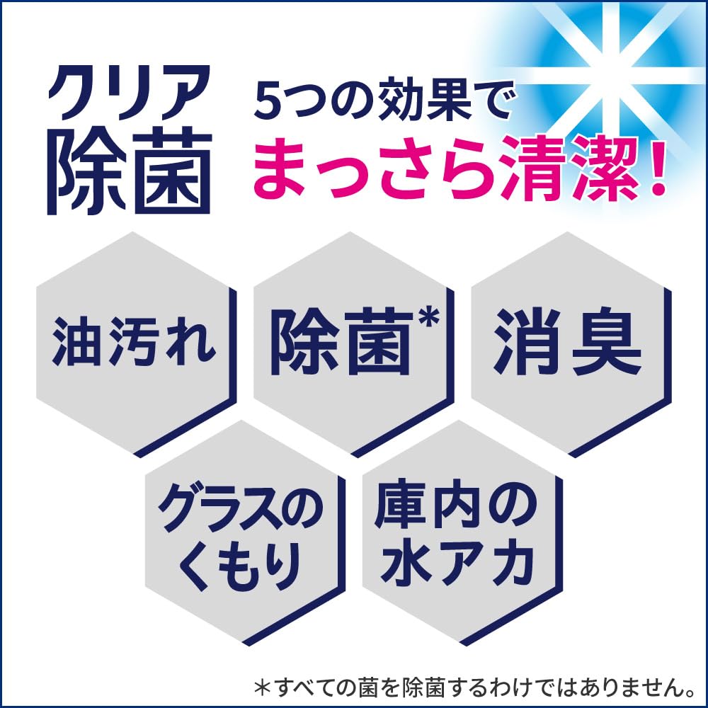 * ご飯粒・卵などの落としにくい汚れ、グラスのくもり、庫内の水アカも落とします
