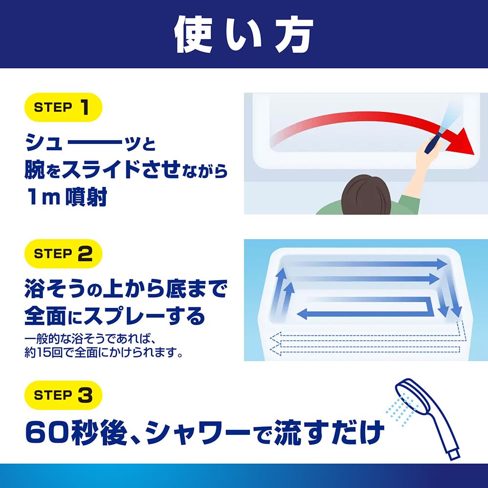 * 浴そうの頑固汚れまで、シャワーの水圧だけでこすらずに落とせるおふろ用洗剤
