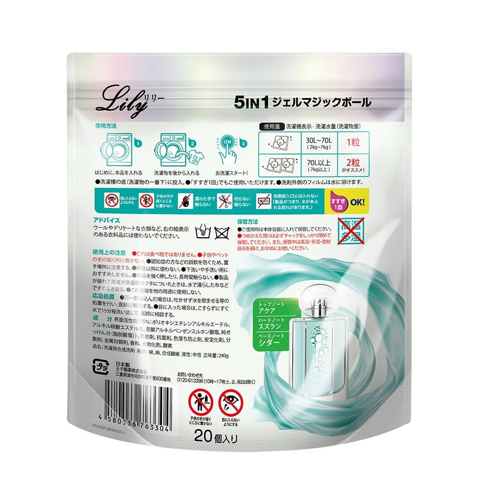 洗濯洗剤 アフューム arfum リリー lily ボール型洗濯洗剤 ジェルマジックボール Gel Magic Ball 詰替 20粒 日本製