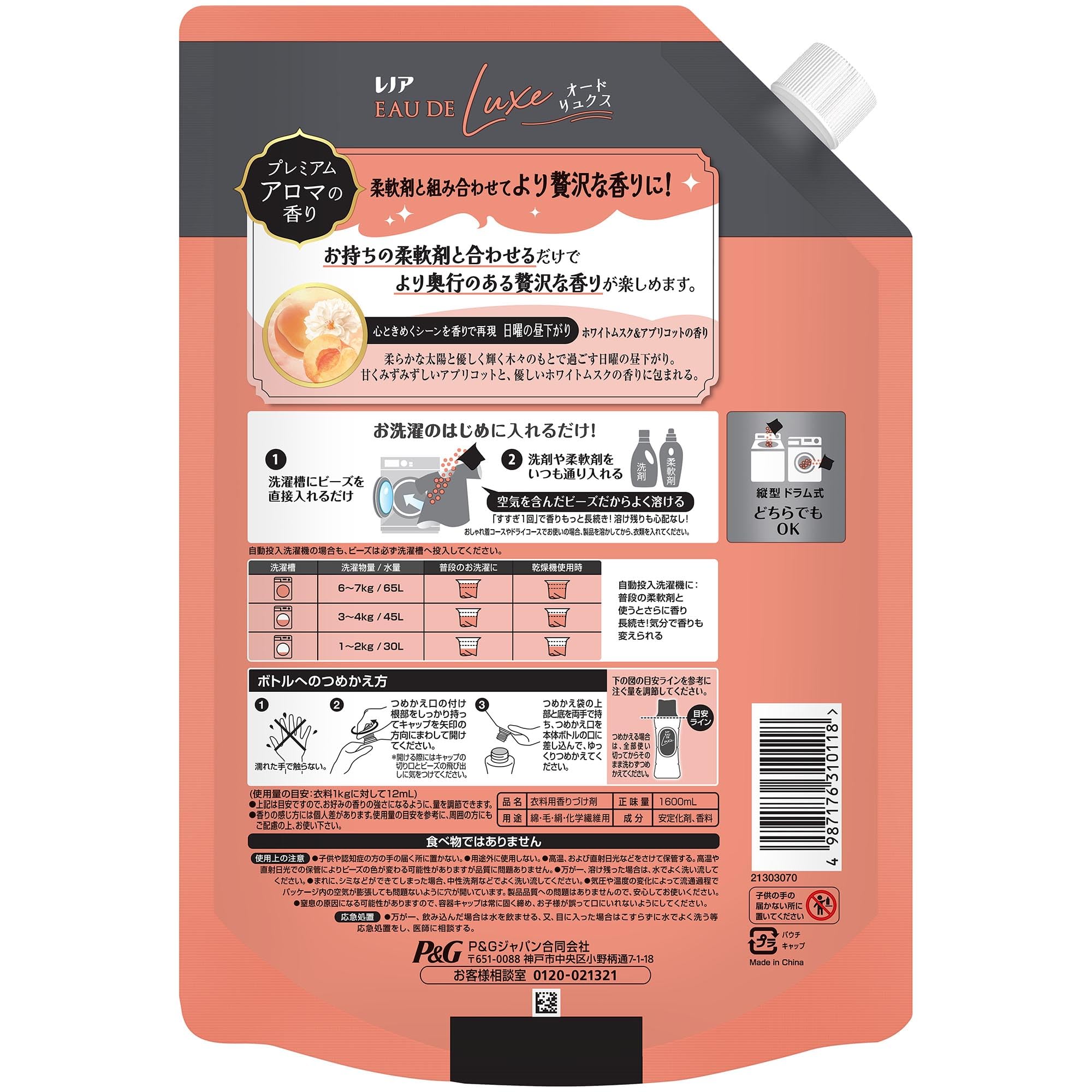 レノア オードリュクス [新モデル] Eternal お洗濯の香り付けビーズ ホワイトムスク&アプリコットの香り 詰め替え 1600mL [大容量] 柔軟剤と一緒に使って香り長続き