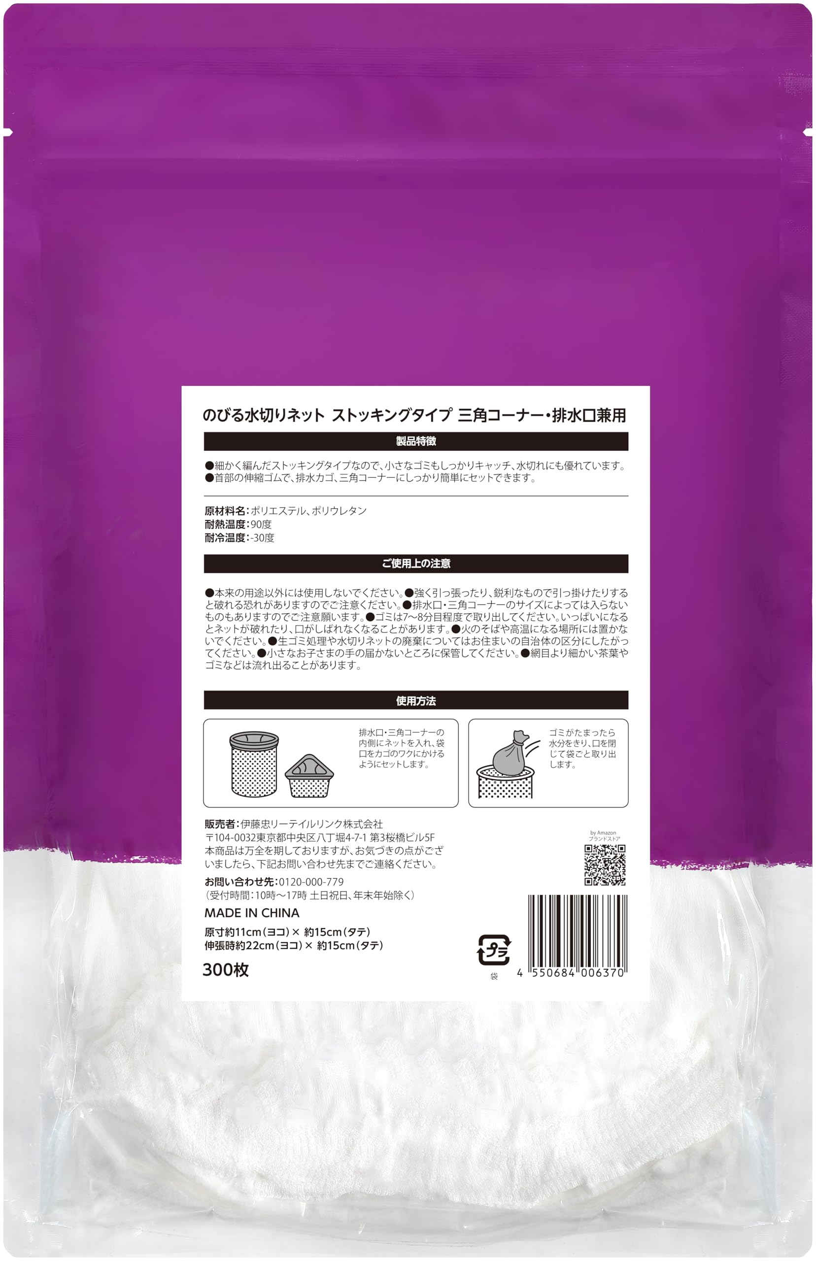 のびる水切りネット ストッキングタイプ 三角コーナー・排水口兼用 300枚入