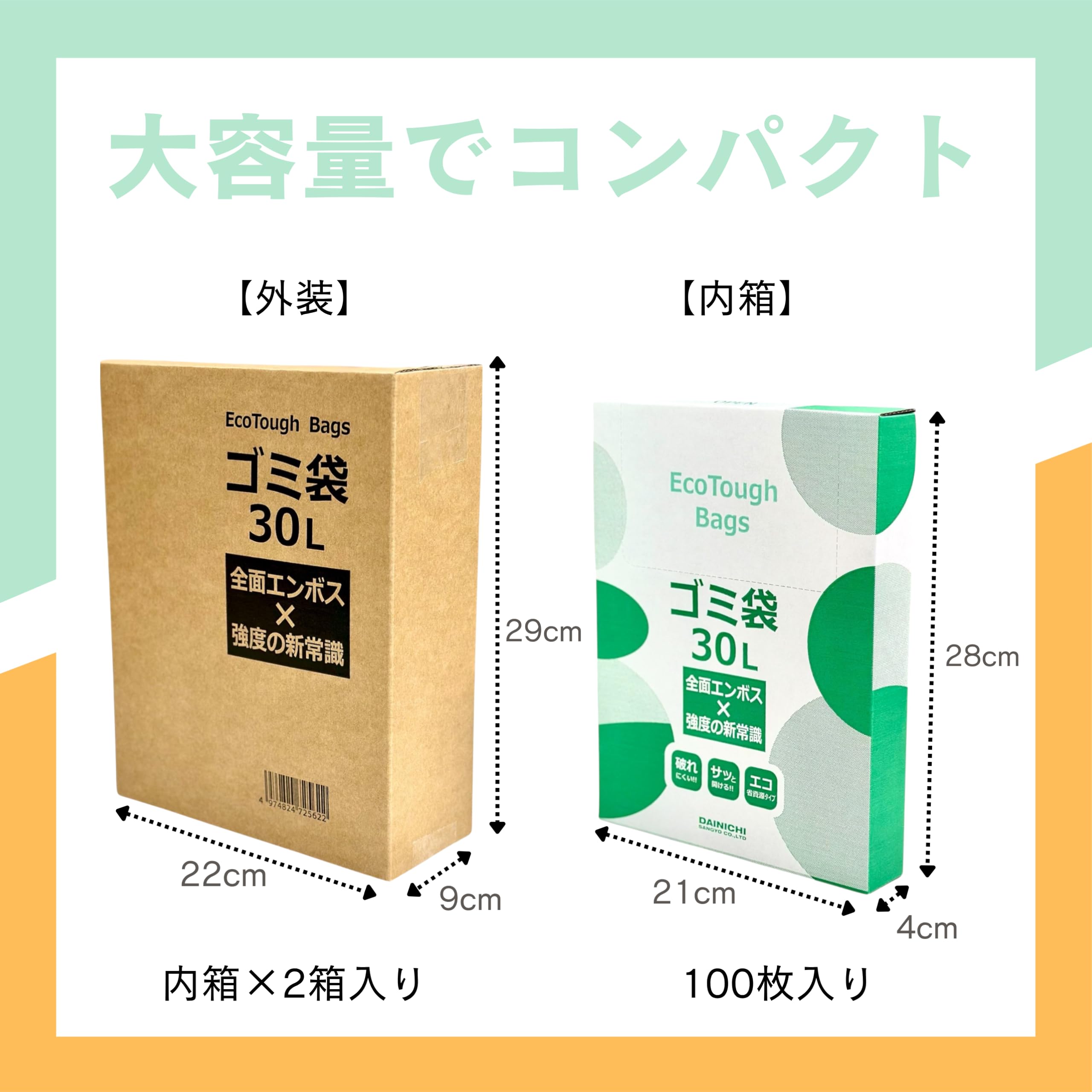【大容量200枚】大日産業 Eco Tough ゴミ袋 30L 半透明 50×70㎝ HDPE 全面エンボス加工 業務用 ポリ袋 大容量 ボックスタイプ