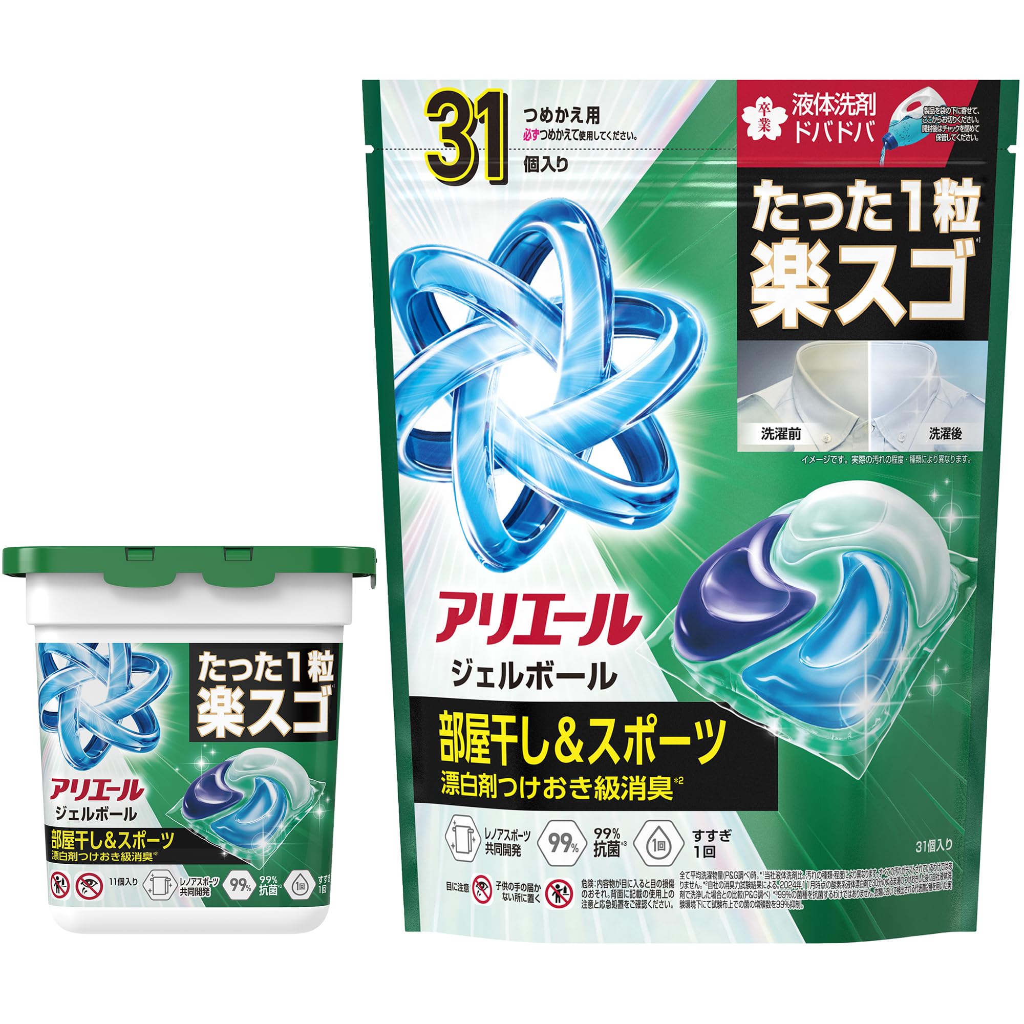 アリエール 洗濯洗剤 ジェルボール プロ 部屋干し&スポーツ 部屋干しでもさわやかな香り 本体11個+詰め替え31個