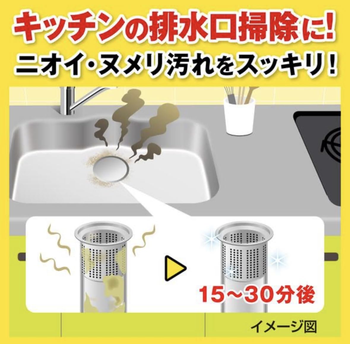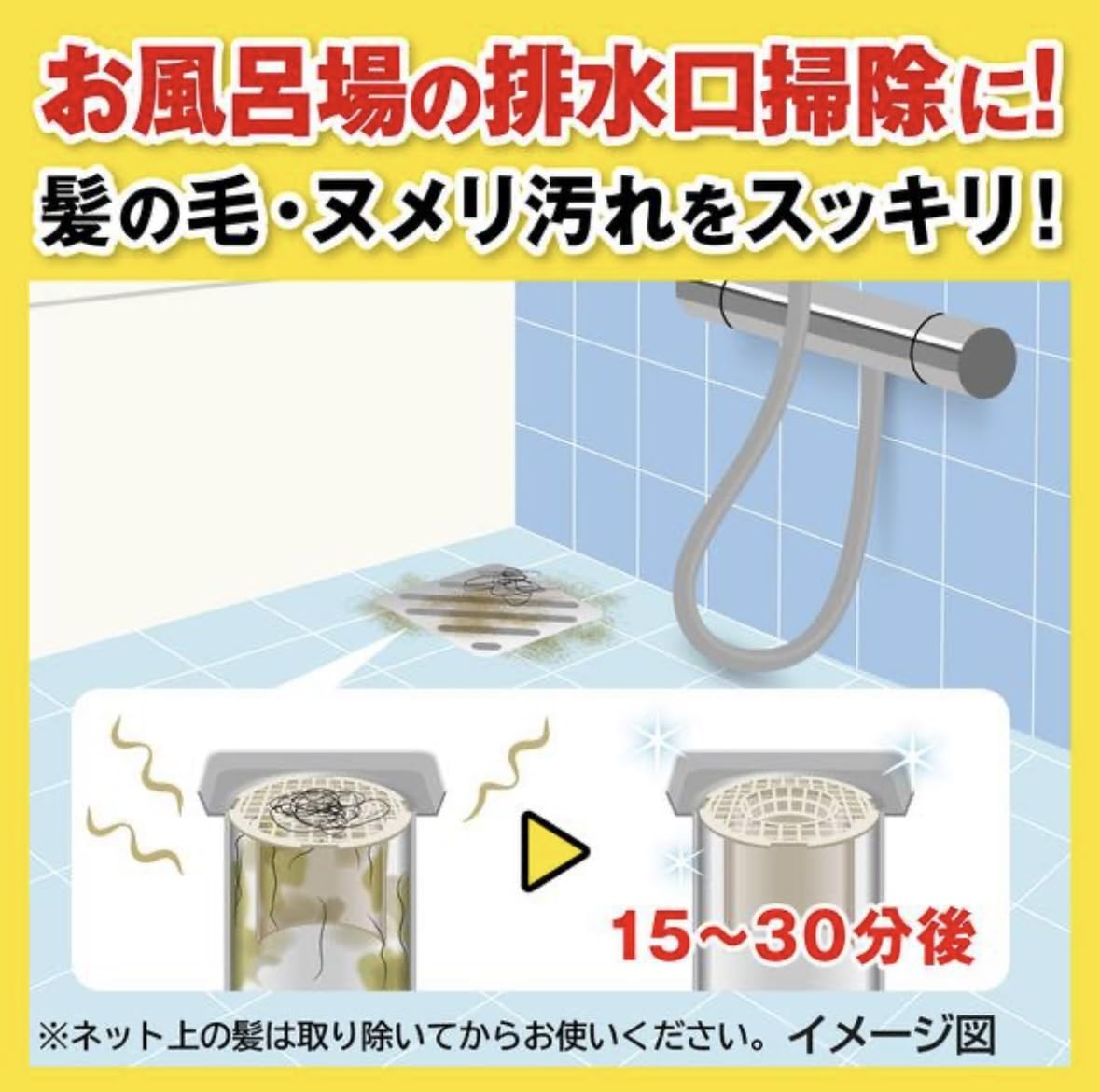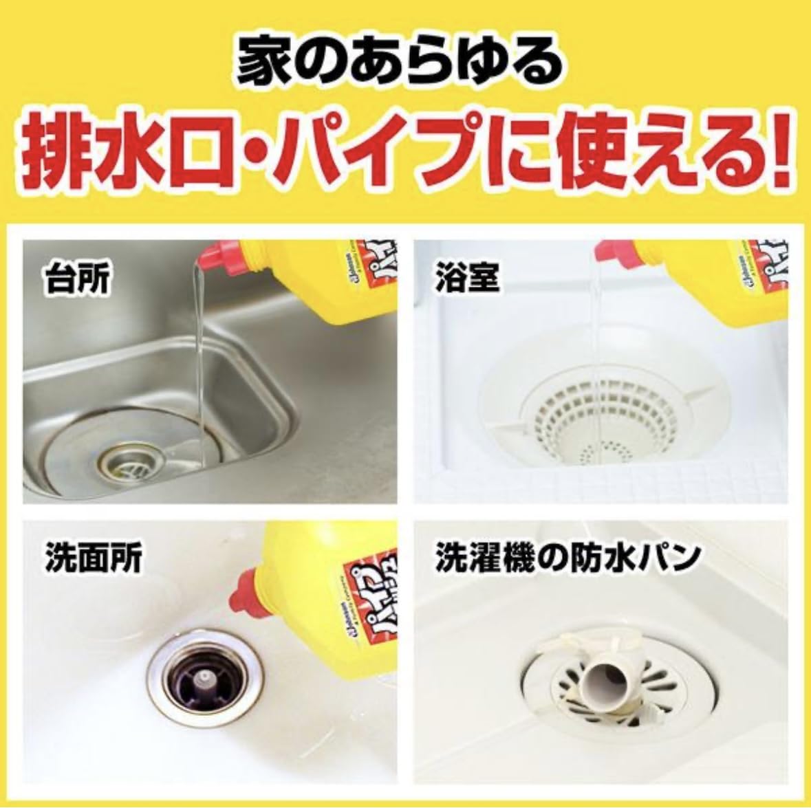 ボトルから直接排水口へ注ぐ。 3.