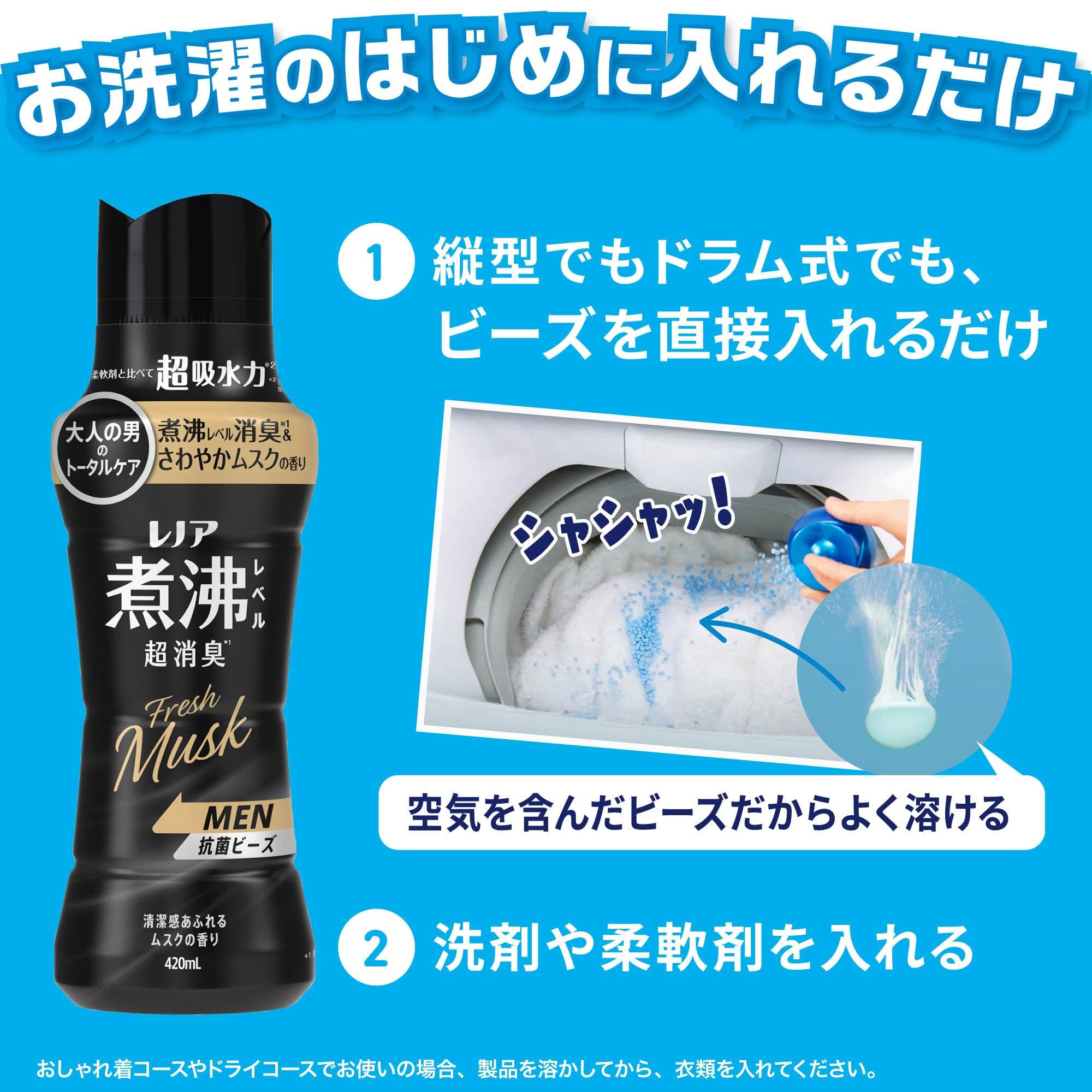 レノア 煮沸レベル超消臭 抗菌ビーズ MEN Fresh Musk 清潔感あふれるムスクの香り 詰め替え 1410mL 柔軟剤と一緒に使って効果長続き