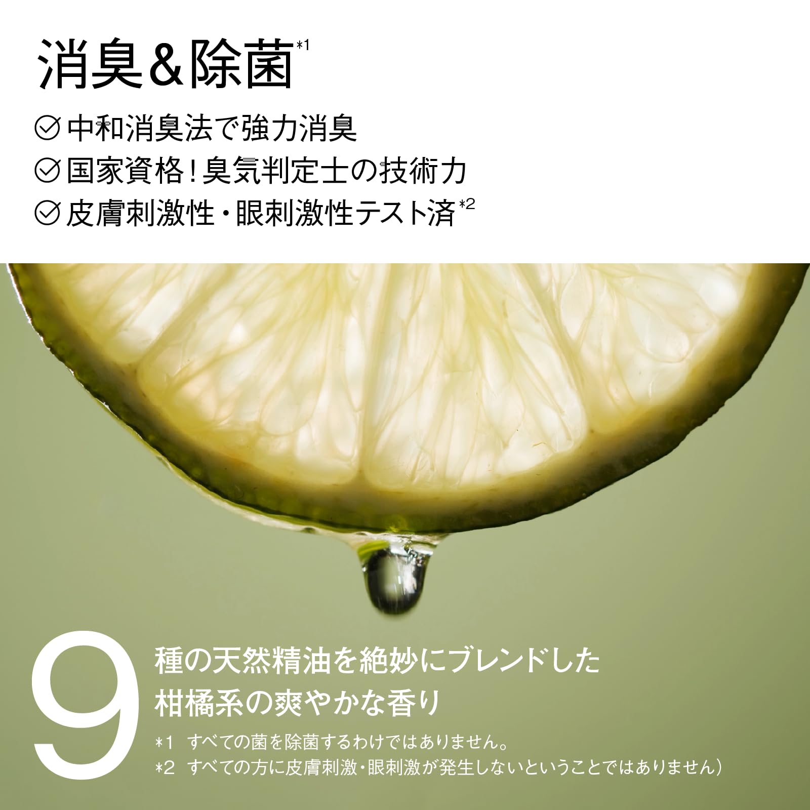 * 【こんなところにも、あんなニオイにも】多岐にわたる生活臭(衣服、靴、ソファ、カーテン、寝具、車、ゴミ箱、トイレ、おむつ、ペット、食べ物、タバコ、キャンプ・焼き物臭など)に対応しています。使用済みのおむつやペット臭の取れないアイテムも、ひと吹きするだけでニオイをキャンセル。快適に過ごせる部屋づくりをサポートします。