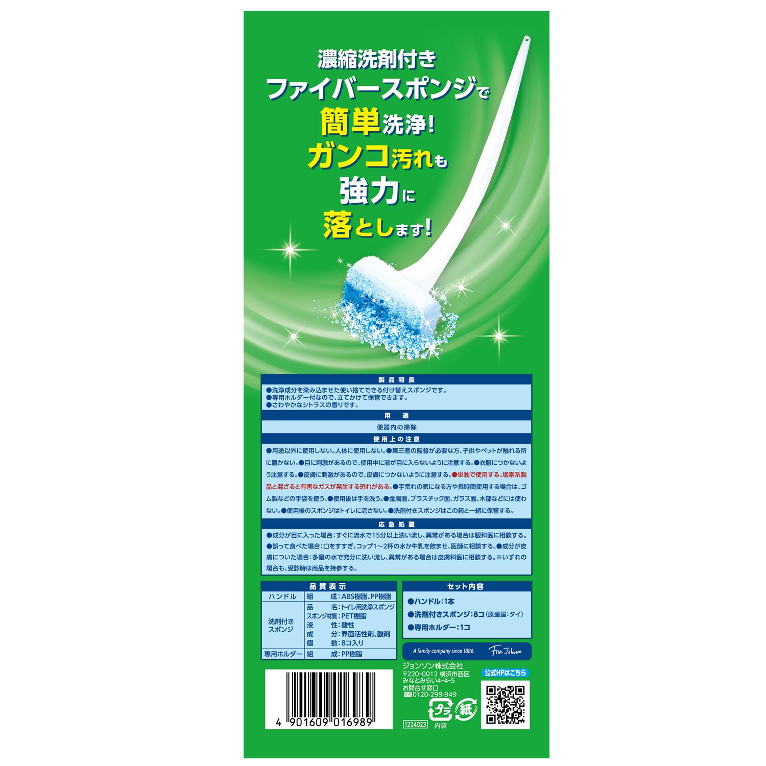 * 濃縮洗剤付きファイバースポンジの取り替え式トイレブラシ