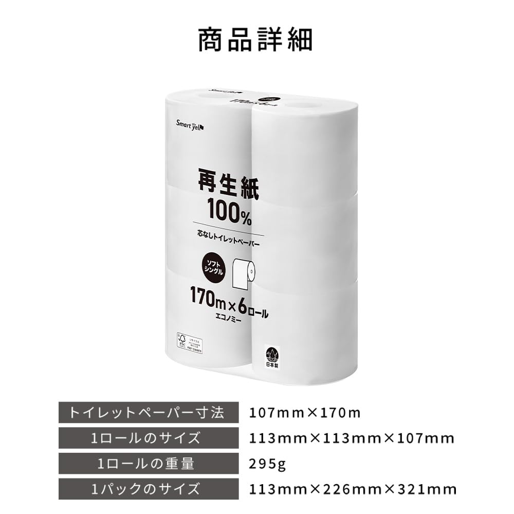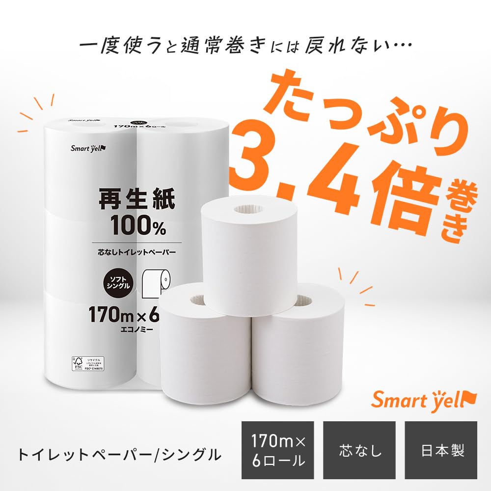アイリスプラザ(IRIS PLAZA) トイレットペーパー シングル 170m×6ロール 3倍巻き 国産 スマートエール