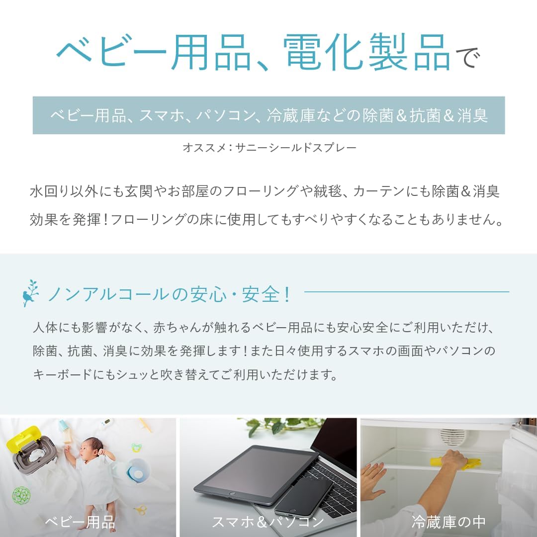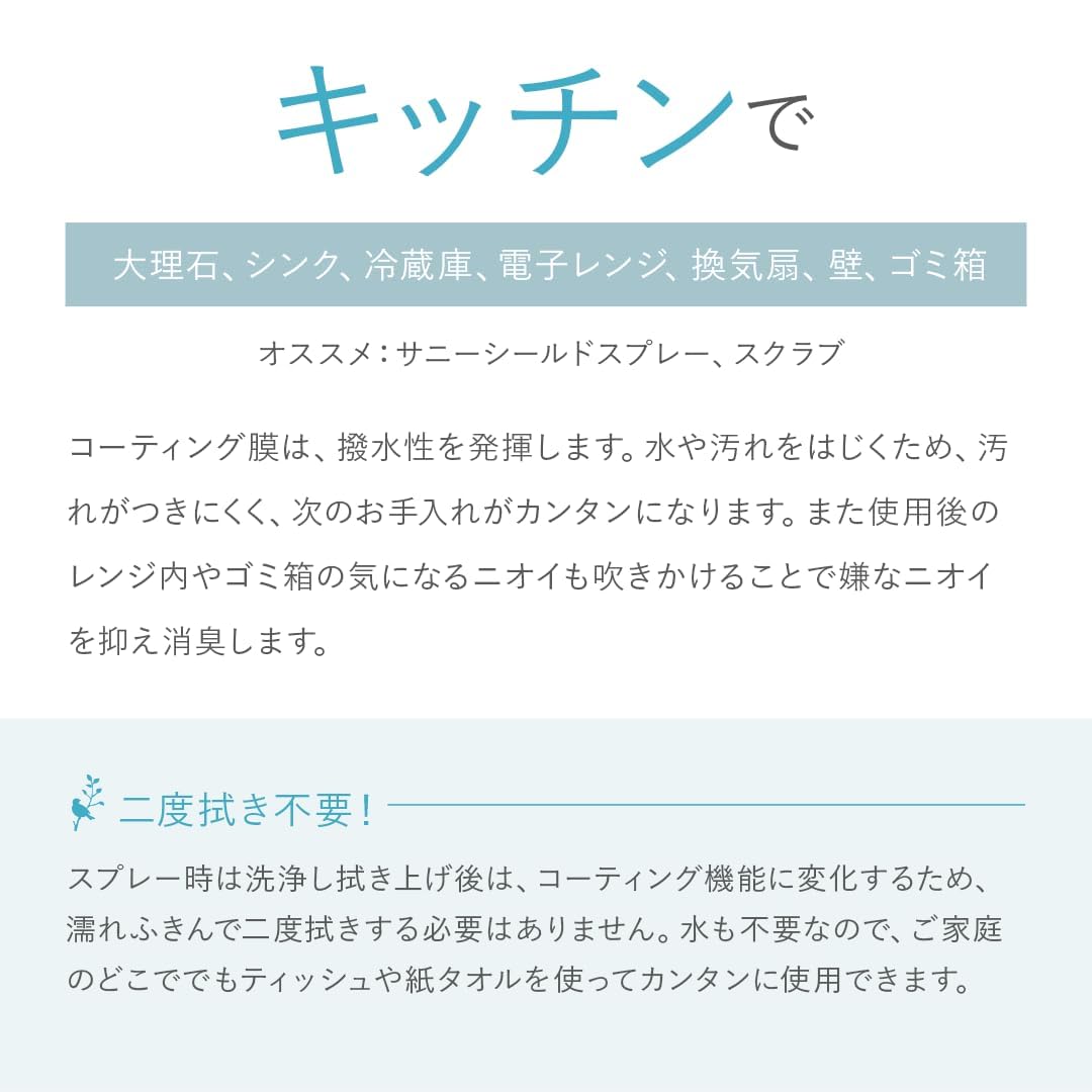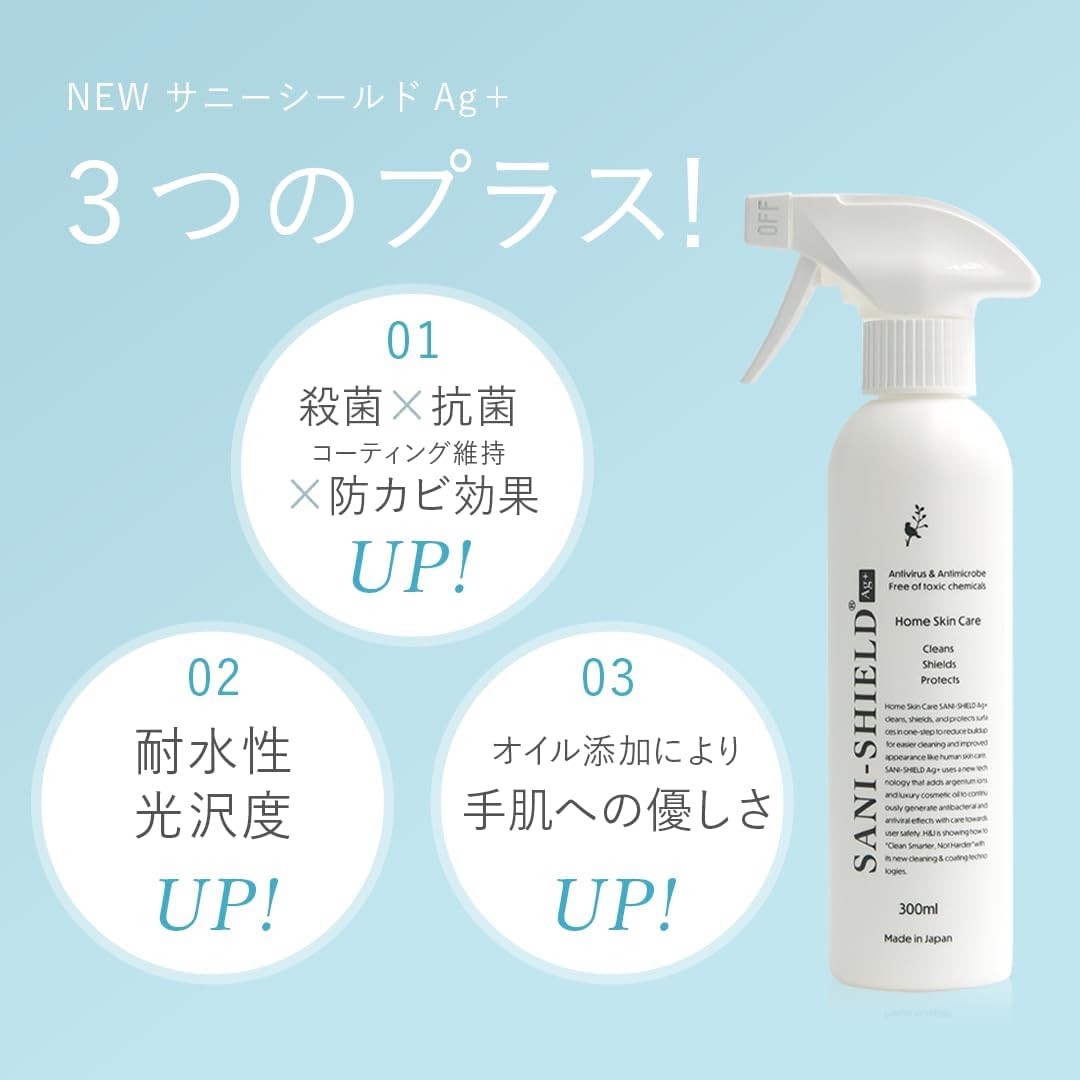 SANI-SHIELD サニーシールドAg+ 除菌スプレー クリーナー 中性 抗菌コーティング ウィルス 花粉 消臭 防カビ お掃除 洗浄 撥水 艶 ツヤ 手に優しい 古堅純子 銀イオン ペット臭 日本製 詰替3袋 無香料