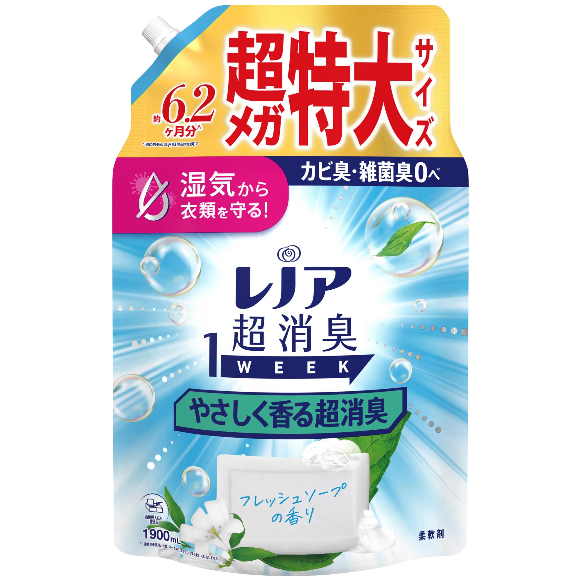 * 新しくなったレノア超消臭1WEEKは、カビ臭・雑菌臭0へ(*1)。湿気から衣類を守る *1 柔軟剤未使用と比較。すべてのニオイを0にするわけではありません。